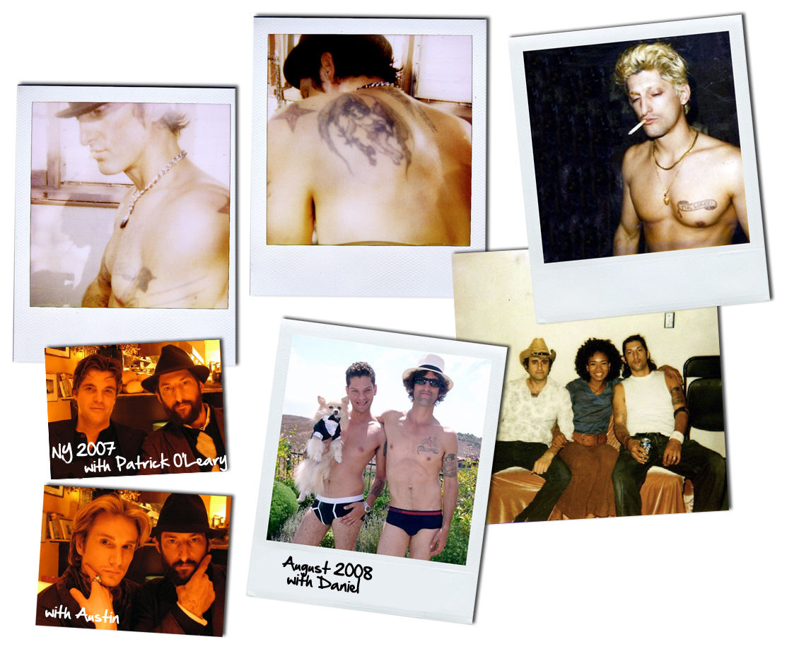 That energy is brimming over right now. Now at age 45 Tony still shifts and flits around like a pre-teen. Even as he talks st length about his regime for detoxifying the organs (Jordan Rubin´s book Patient Heal Thyself is his functioning gospel) he´s full of bile and vitriol for puritanism, politicians (save Obama) and the passage of Proposition 8 banning same-sex marriages in California. He´s combustible and passionate. By turns he expounds on Buddhism, Deepak Chopra, Osho, anarchy, death, power, control, sex, love and art. He has a million plans, projects, and irons in the fire. A short film, insired by La Jetée, which he is producing for Bailey Hat Company; then a feature film he´s producing and acting in; also another film, The Story of Jen, in which he plays the lead, presently on the festival circuits; oh, an internet forum for filmmakers; a fashion line he´d like to do with Alexander McQueen... "I don´t want to just be a picture in a magazine. I have some things to say,. In fact, I have too much to say1 I´m doing a photo-autobiography with [art director] Sam Shahid. I have a ton of material and I love the idea of a pictorial biography to tell the story." He shakes his head, marvelling at it all for the moment. "Man," he says, "I´m just trying to work so hard I can´t see straight." He´s been out in the sun all day, working on paintings for an upcoming show, and apologises for being dead tired but the way he talks with such vigour I wonder if his mint tea isn´t spiked with something just a little more.... substantial. Not likely. Tony´s been sober going on four years now. "I was an alcoholic, or, rather, I am an alcoholic - I´m a twelve stepper and all that." He readily cops to a hard diet of hard drugs once upon a time. But rock bottom come in the form of "trying to paint, trying to be this painter, jacked on heroin, listening to Janes Addiction and just nodding out in the middle of the painting. When I woke up I was just like, ´This is a joke. You´re stuck, stuck in this ridiculous idea of yourself.´ I was trying to be this thing instead of just being me, you know?"