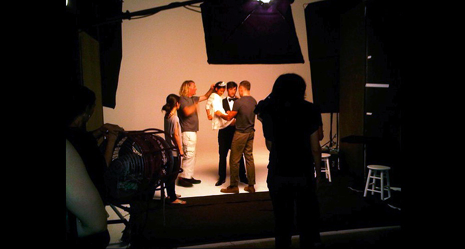 Actually it’s based on my art work with my partner Daniel Rivas. I came up with an idea for a portrait…kinda like Richard Avedon. For the cover shot we recreated one of our paintings. I am Daniel’s character and he is mine. It’s really a bizarre painting called Give Me Head…