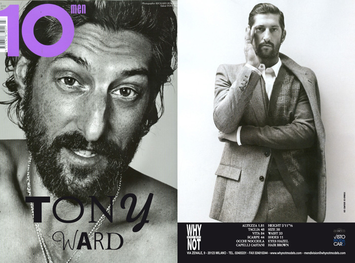 Tony Ward, one of the most prolific and recognisable male models of, well, ever, is standing outside the lobby of the Culver Hotel in Los Angeles, talking about being pigeonhold. Over his career, Tony has been the subject of some iconic male erotic imagery, shot by the haute vanguard of fashion photographers, from Herb ritts to Steven Meisel, Greg Gorman to Jack Pierson. "So that´s who people expect me to be," Tony says. "I meet people and they go, "He Tony, are you gay, Tony? Are you straight, Tony?" And I say, " Hey, I´m Tony, nice to meet you." I don´t define myself , I don´t de-fine myself at all. I do what the fuck I want when I want and it upsets people some of the time!" He pauses before adding, "A lot of the time." For a guy who carries so many titles - model, gay icon, photographer, painter, actor, producer, director, husband, father - he certainly dislikes labels. For a guy who, for more tham 25 years, and most notably in the early ´90s when he was dating Madonna, had his personal parts on public display, he surely doesn´t like to be, ahem, tied down. "I don´t give a fuck about that. The nudity, the sexuality out there, look, it´s like an appendage, it´s like a finger. I don´t see how people can stomach the torture of prisoners or the slaughter of innocent people all over the world and even raise an eyebrow over some sex."
