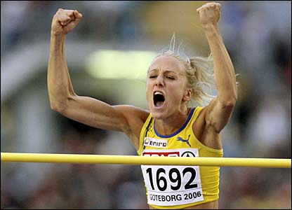 Kajsa Margareta Bergqvist (Swedish pronunciation: [?kaj?sa ?bær?j?kv?st]; born October 12, 1976 in Sollentuna Municipality in Stockholm County) is a Swedish former high jumper. She won one bronze medal in the Olympic Games, one gold and two bronze medals in the World Championships in Athletics and one gold and one bronze in the European Championships. Her personal outdoor record of 2.06 m, set in Germany in 2003, is also a Swedish record. Her indoor record of 2.08 m, set at the Hochsprung mit Musik meeting in 2006, is still the standing world indoor record.