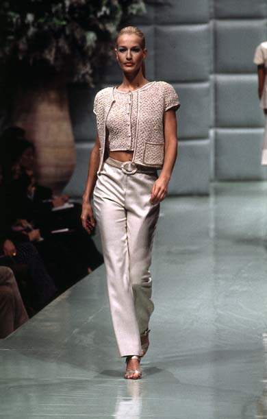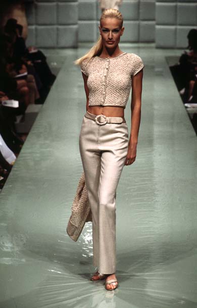 That Versace Haute Couture S/S 96 is one of my favorites. I don't really "get" Haute Couture. I understand that the garments are intricately sewn and all that, but with Haute Couture, I typically just don't "get" the high quality of their artistry, or any of that. I love the looks in that Versace show, though. My only complaint ... Karen doesn't have more exits! Valeria Mazza only gets two exits! Boooo!