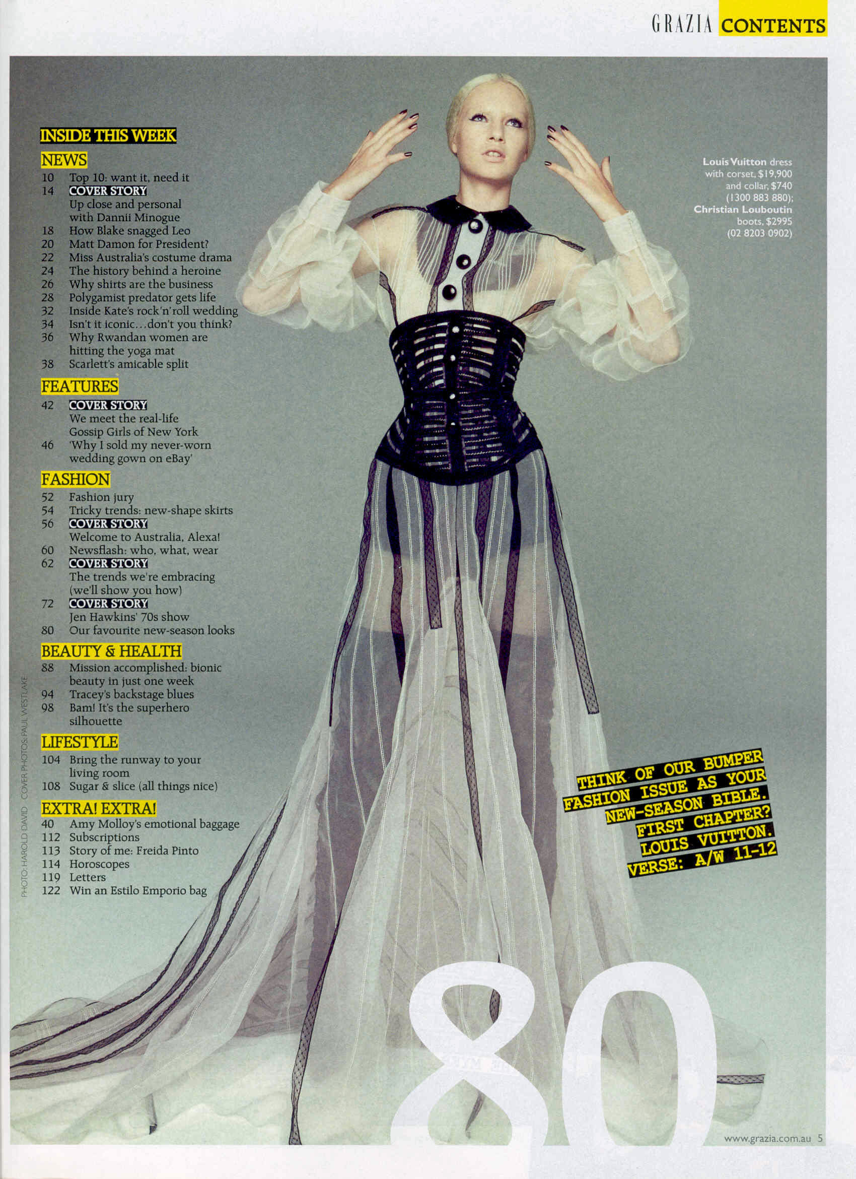 GRAZIA AUSTRALIA (August 29, 2011)"Nouveaux"Ph: Harold DavidStylist & Hair : Thelma McQuillanMakeup: Andrea Black