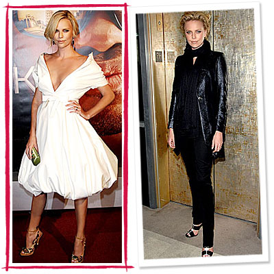 In 2008, Theron was flawless in a covetable custom Dior gown (left) from John Galliano, who calls the star, "so involved and creative." Meanwhile, her figure-flattering downtime style (right) was proof of what stylist Becks Welch deems her "great eye" for clothes.