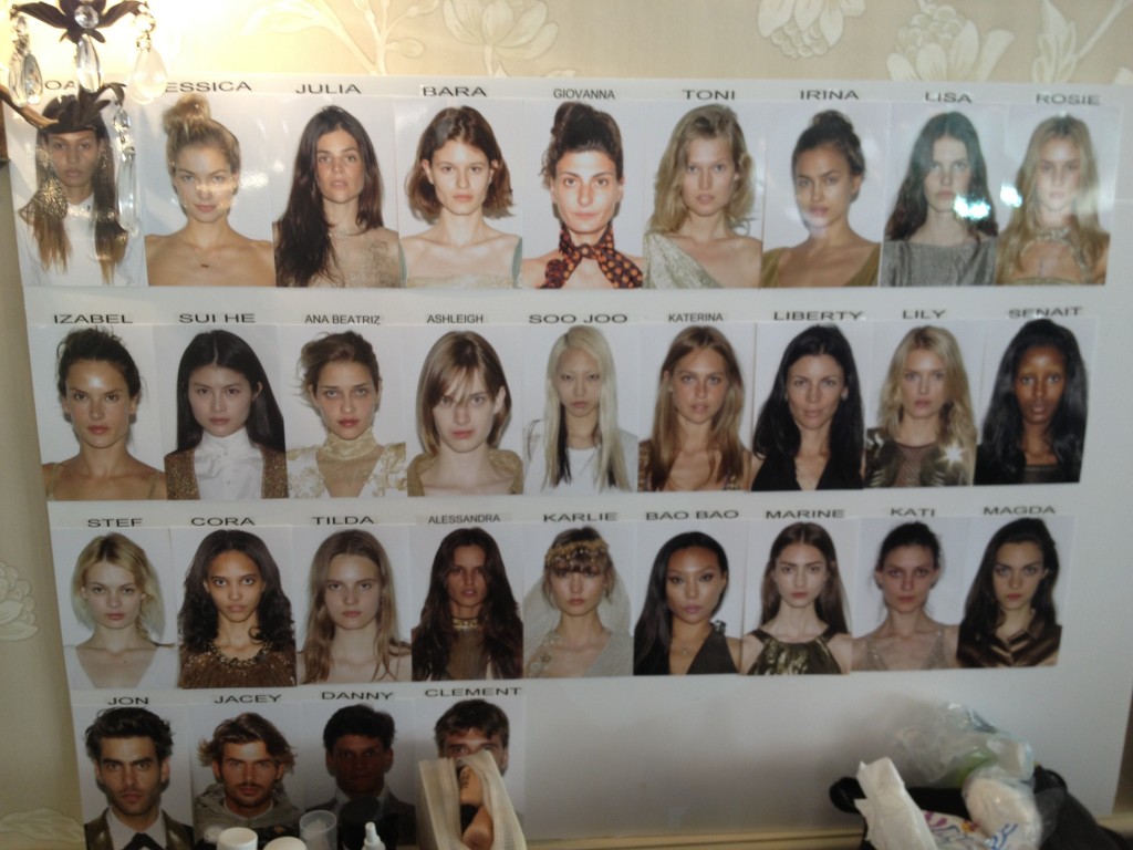 A picture board of all the models taking part in the amfAR Gala Gold show by Carine Roifeld in Cannes, lol Alessandra and Izabel were incorrectly labelled by some silly person