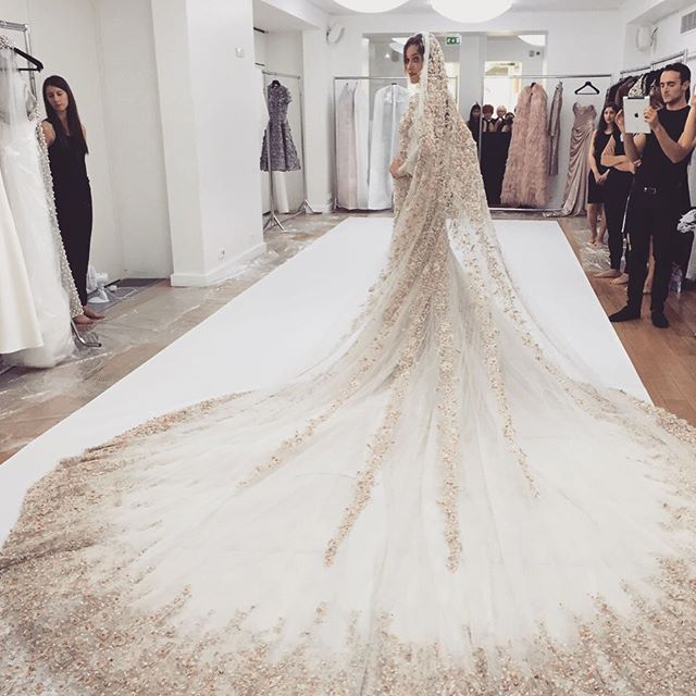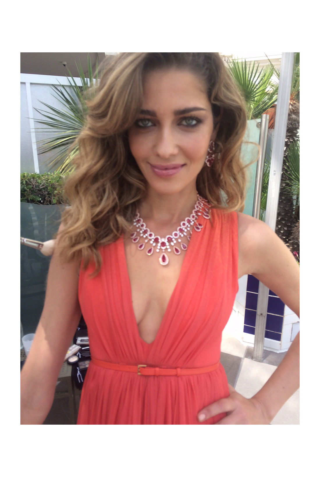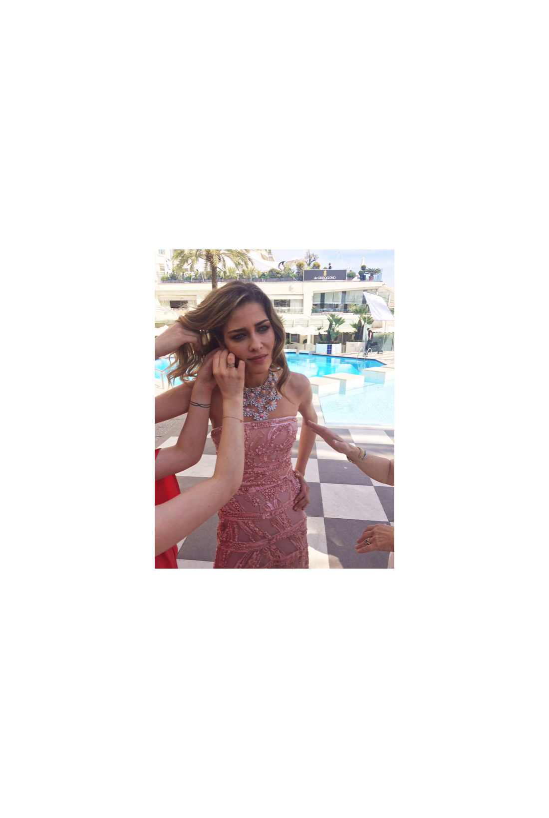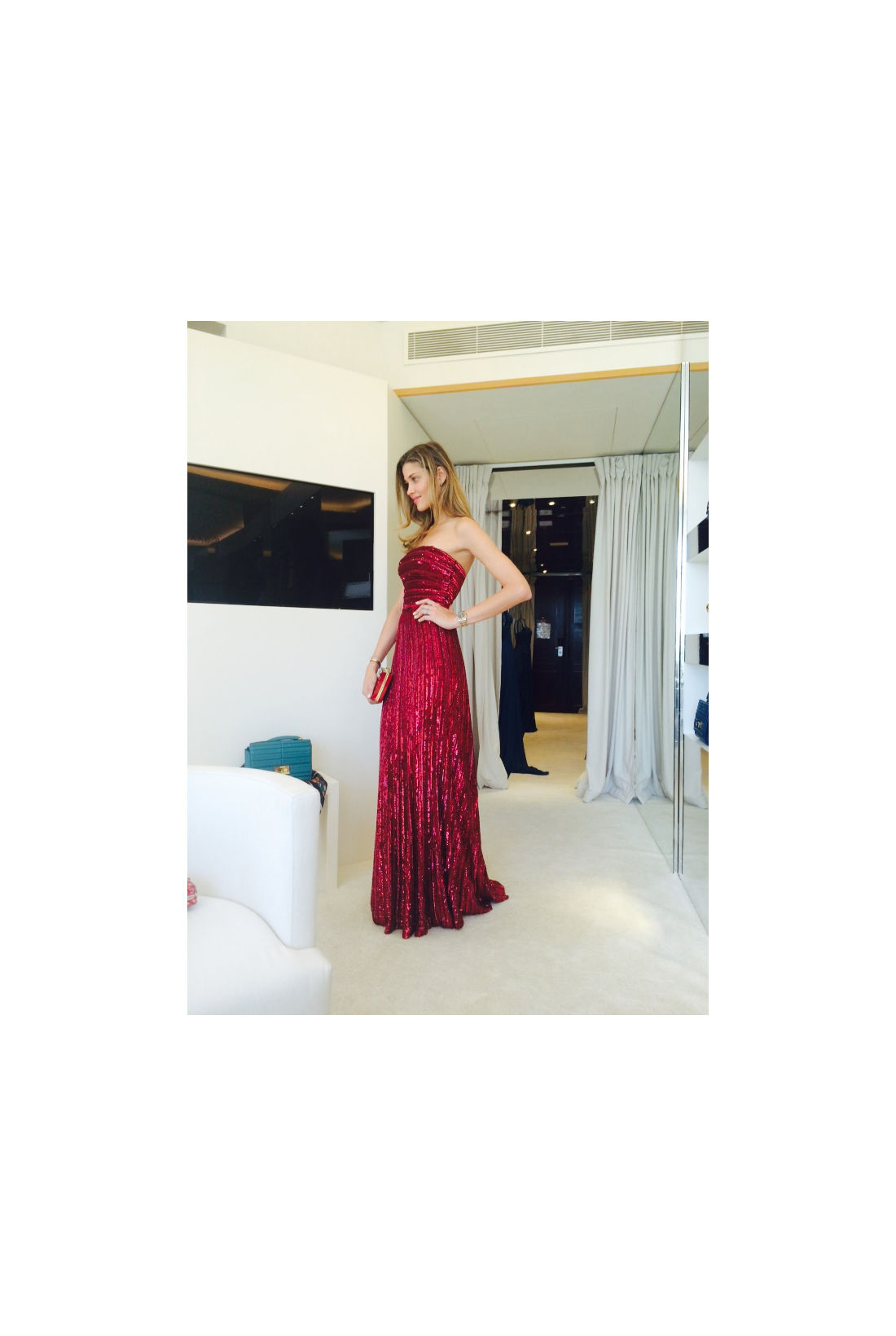 At the Elie Saab fitting for my dress for the Chopard Gold event. The dress is red and hand-beaded—so beautiful.
