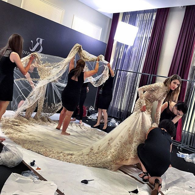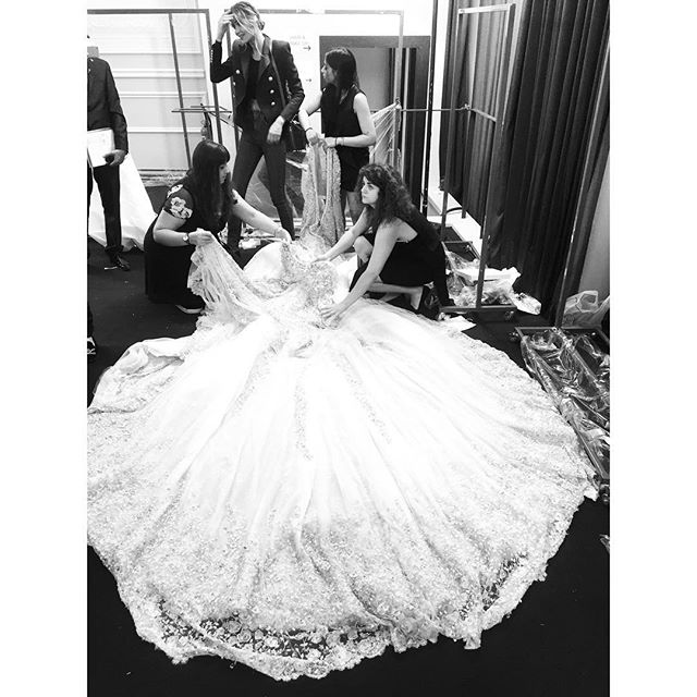 Behind the scenes, Elie Saab gowns waiting patiently for me to model them in the Chopard editorial shoot.