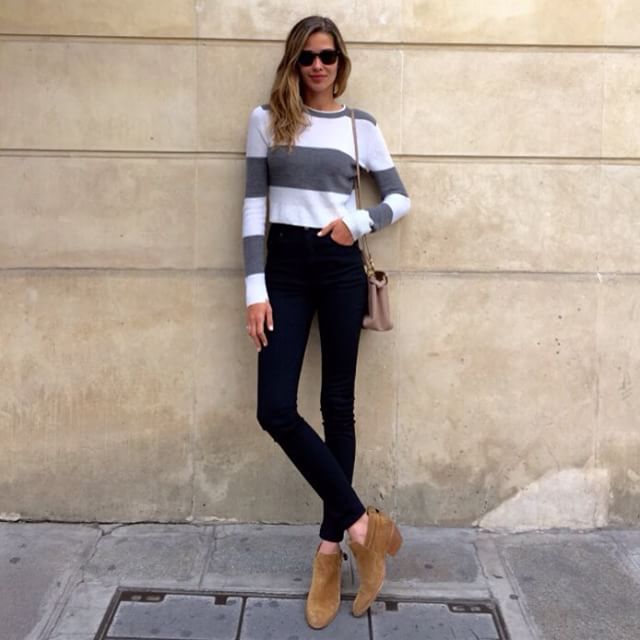 @anabeatrizbarrosofficialé expert em vestir looks casual chic. No#instaweek de hoje, a top inspira a gente a vestir o visu comfy que é a cara a estação, com esse mix esperto de tricô listrado + calça justa preta - e precisa mais? Trocando em miúdos: top@alc_ltd, calça #saintlaurentparis, botas@rag_bone, bolsa @fendi e óculos@tomford