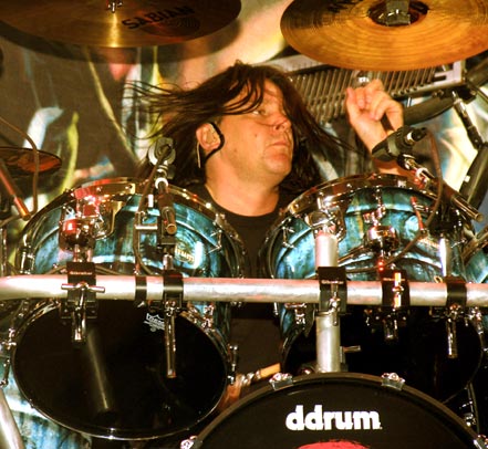 Megadeth began the Blackmail the Universe world tour in October 2004, enlisting touring bassist James MacDonough (Iced Earth), and guitarist Glen Drover (Eidolon, King Diamond). While in rehearsal for the tour, drummer Nick Menza parted ways with the band, as he was unable to prepare for the physical demands of a full US tour. He was replaced just five days before the first show by Shawn Drover, brother to new guitarist Glen Drover, and also a member of the Canadian thrash metal band Eidolon. The band toured the US with Exodus, and later in Europe with Diamond Head and Dungeon.