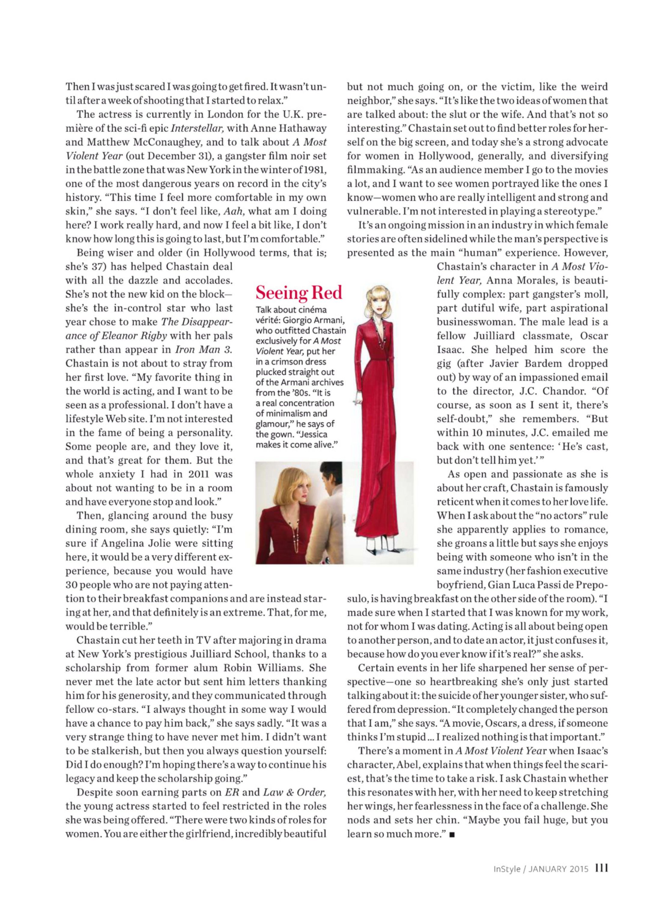 "In New York City 1981, an ambitious immigrant fights to protect his business and family during the most dangerous year in the city's history. Jessica Chastain bites down hard as Anna Morales, Abel's wife. Chastain constructs an enigmatic woman, a Lady MacBeth-type, but with an authentic style that steals the show. Definitely alluring, and inhabiting a sexiness you can't teach in Julliard, Chastain keeps the audience in the dark but with a complete hypnosis. She fixates on her motives with a terrifying determination, accompanied by a gritty script, and sets the screen ablaze word after word, minute after minute" (IMDb)