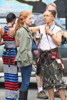 Jessica Chastain attended the premiere of Madagascar 3 in a classic strapless sweetheart gown glittering with beads. The stunning flame-haired actress paired the Giorgio Armani creation with floral Chopard diamond earrings and a bright red lip color.