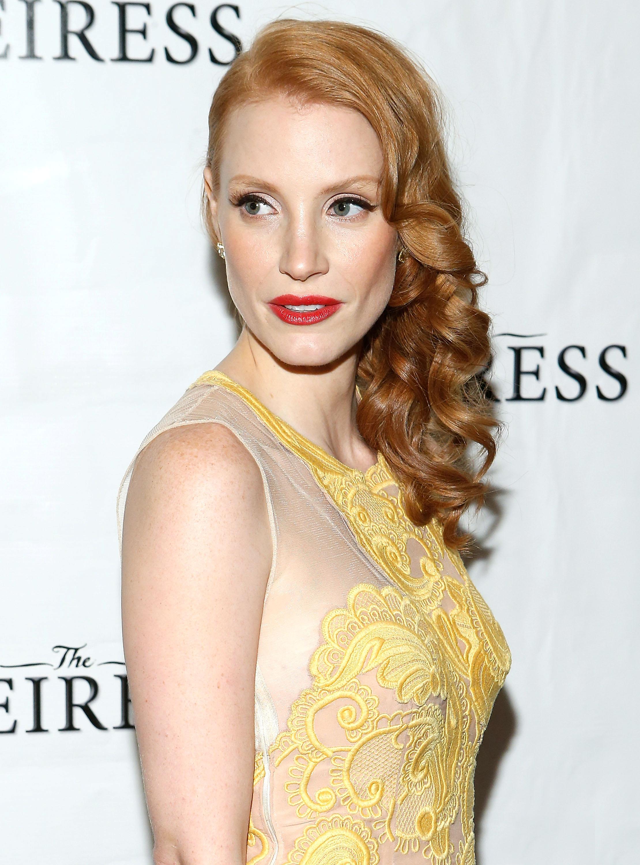 Jessica Chastain, who just announced she'll make her Broadway debut in the upcoming revival of The Heiress, played up her fair complexion in a simple pale pink gown by Alexander McQueen and sparkly Louis Vuitton jewels.