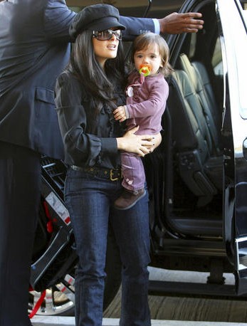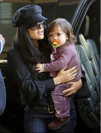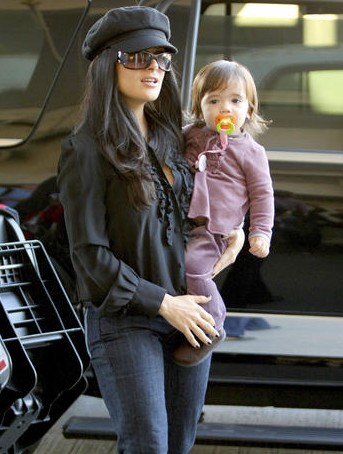 Salma Hayek arrives at LAX with her daughter Valentina to catch a flight out of town on January 12, 2009.