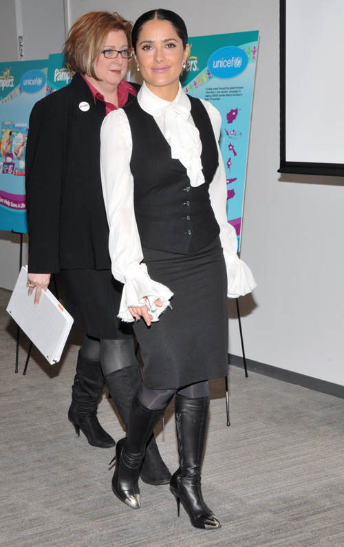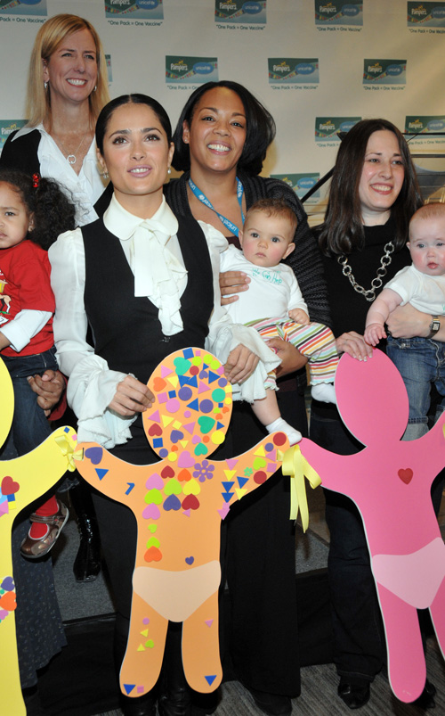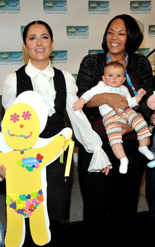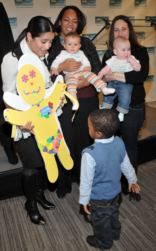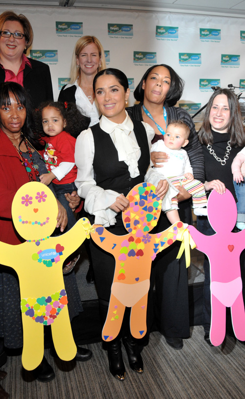 Stepping out for a good cause, Salma Hayek launched the second year of the “One Pack = One Vaccine” campaign at the United States Fund for UNICEF in New York City on Thursday (February 5).