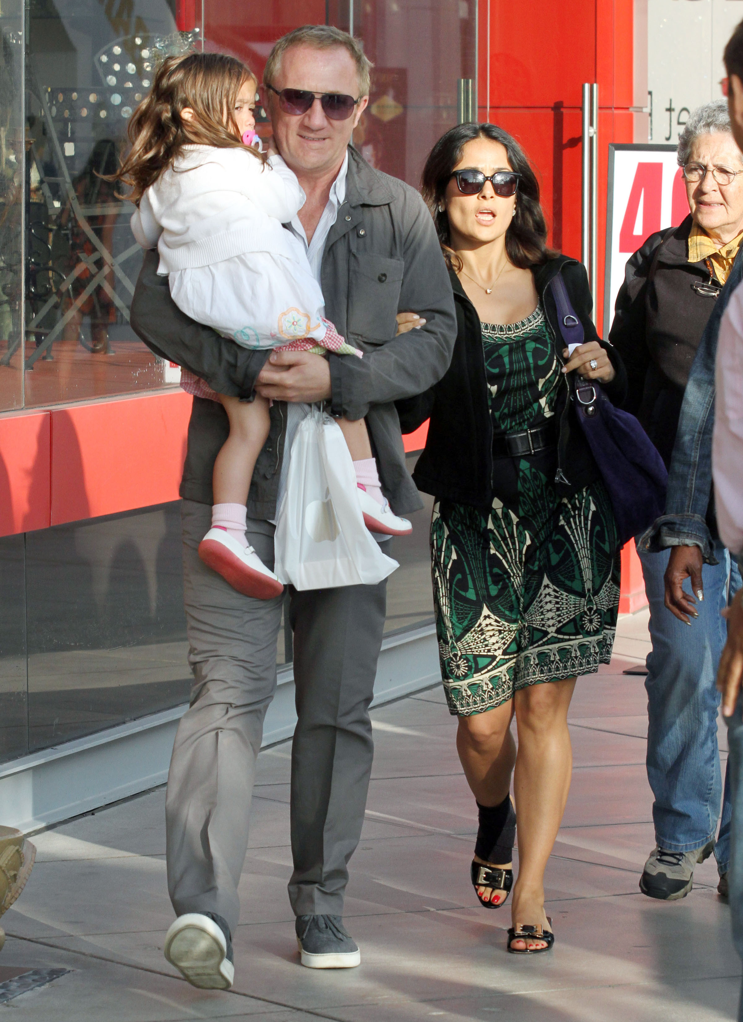 Hayek, a mother of one, was there to promote her new movie, Grown-Ups, in which she stars alongside Adam Sandler, Kevin James, Rob Schneider, Chris Rock and David Spade. The movie is about a group of high school friends who reunite as adults after their basketball coach dies.