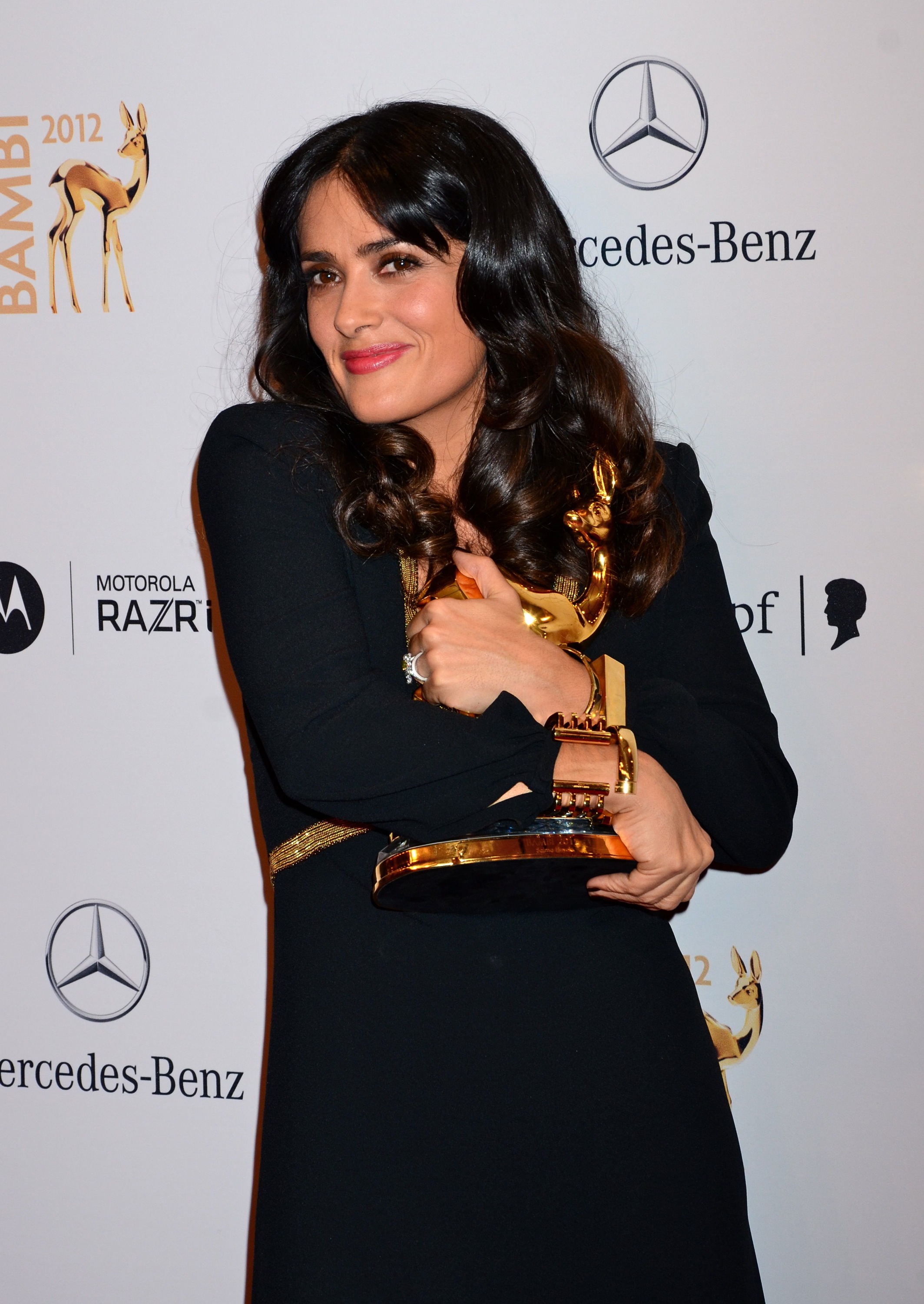 Salma Hayek poses with her trophy for Film International during Bambi 2012 in Duesseldorf 22.11.2012