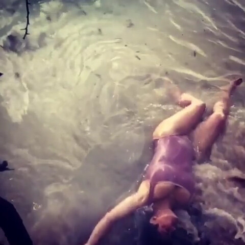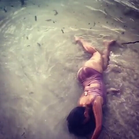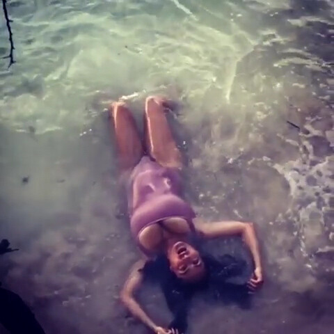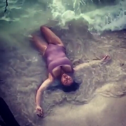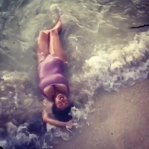 Salma Hayek - Swimsuit in Sea Waves 27/8/2019