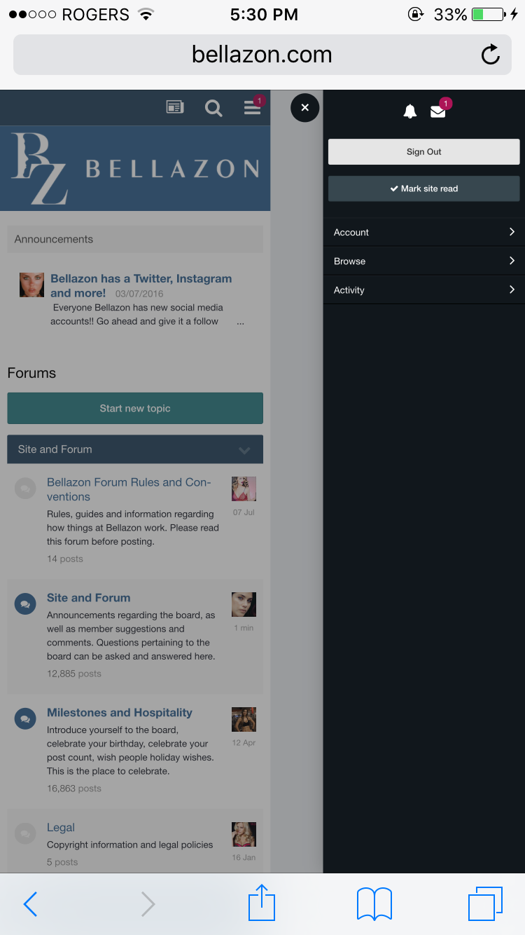 On 5/7/2016 at 4:29 PM, toodarnhot said:The site has been displaying oddly on mobile for me. The sidebar doesn't slide out properly when I click on notifications. I have to zoom out on the page, and it still displays oddly. I'm not sure, but I think it might be tied to the mobile ads? I noticed it happening around the same time as the ads appeared.