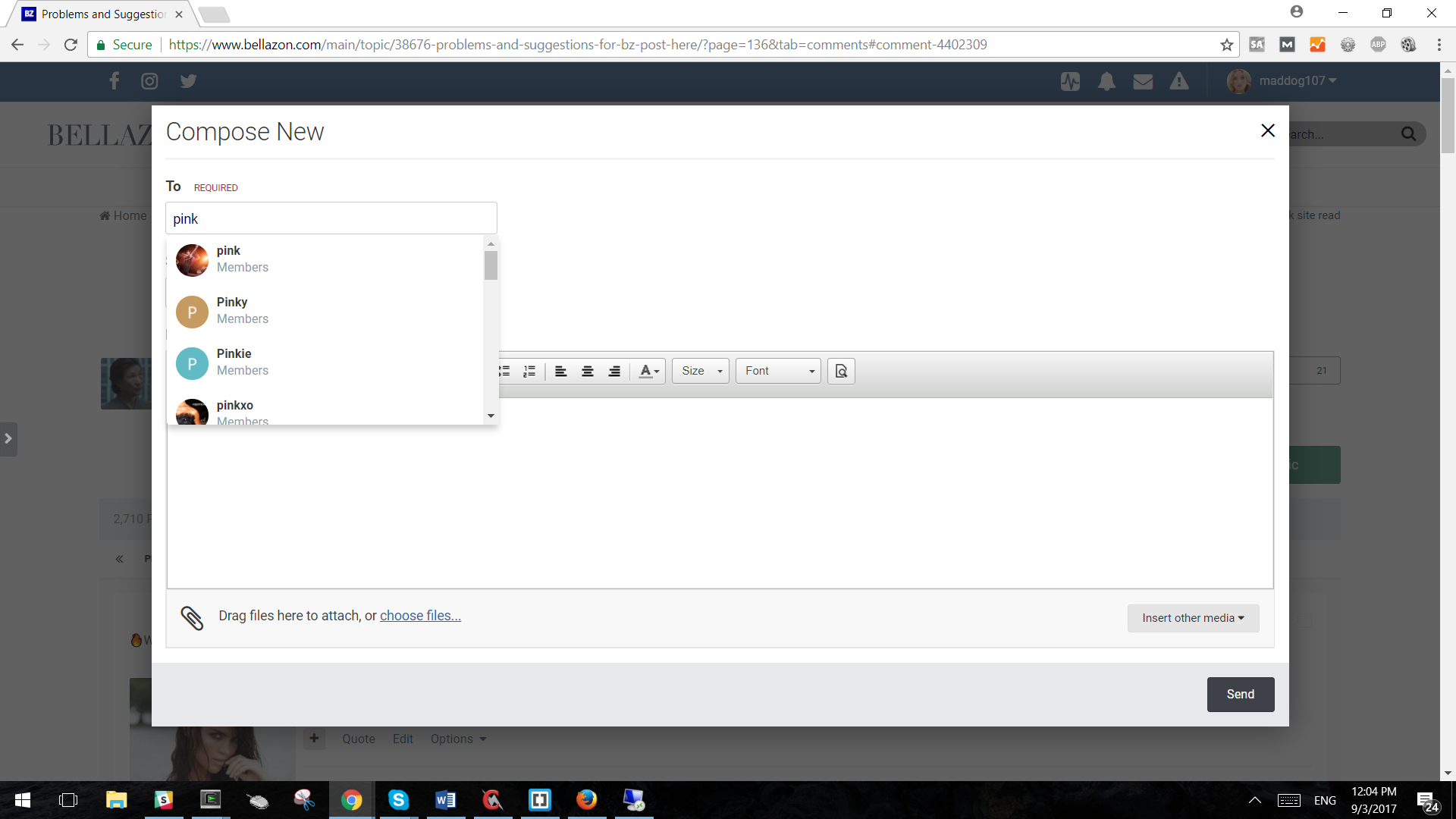 Sorry, the old message was from a long time ago and I dont remember what your issue was, can you please repost? I think in the "to" box you can just start typing and it will autofill with the names. Let me know if thats not what you are asking about.