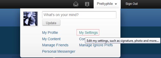 Click on MY SETTINGS, and another page will pop up and you'll see SIGNATURE on the left.