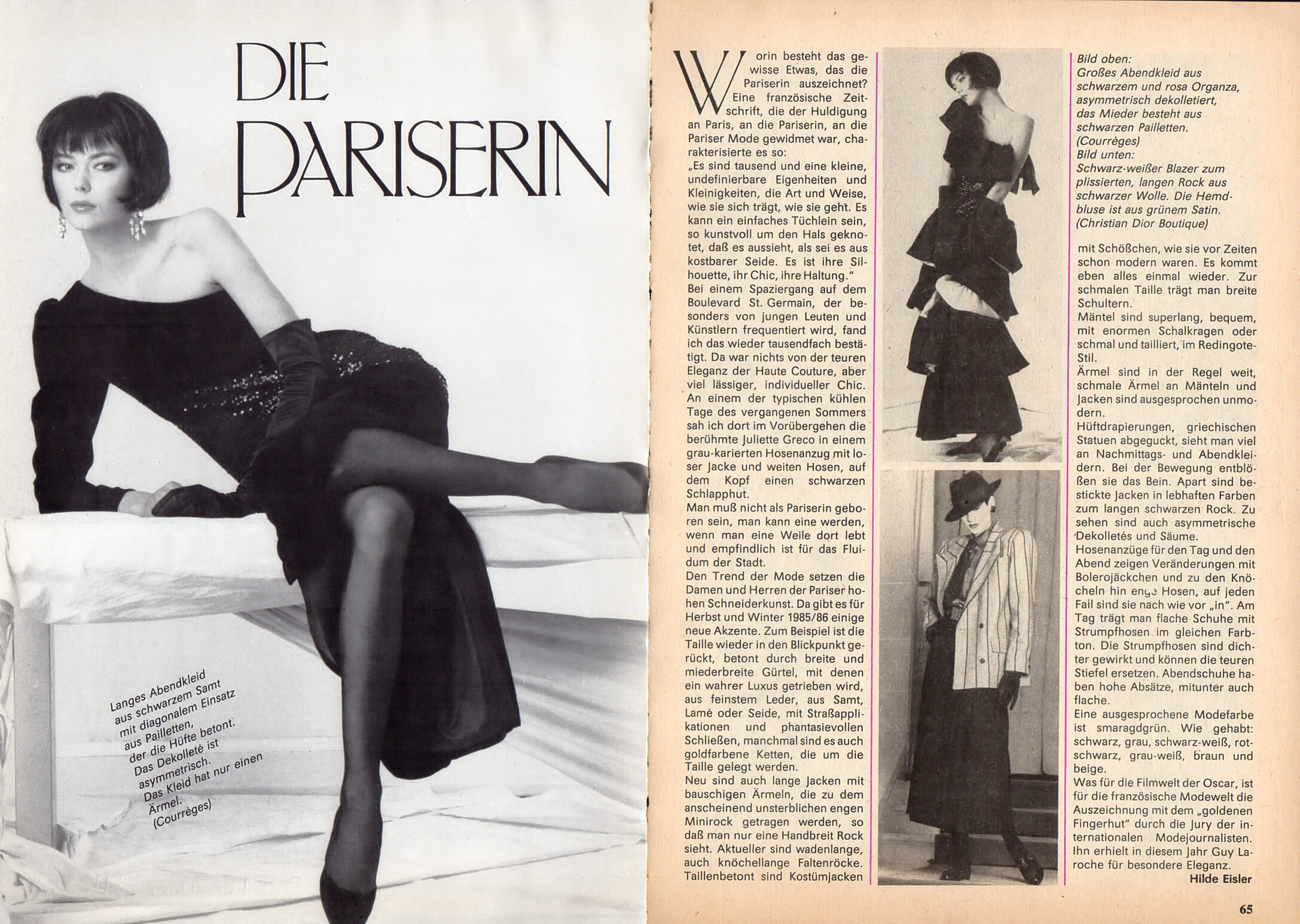 "DIE PARISERIN" - Das Magazin Germany November 1985 - also showing Ines de la Fressange, Christine Bolster, unknown