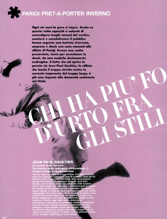 "chi ha piu' forza d'urto fragli stilisti?" VOGUE Italia, July 1984 Photographer: Steven Meisel
