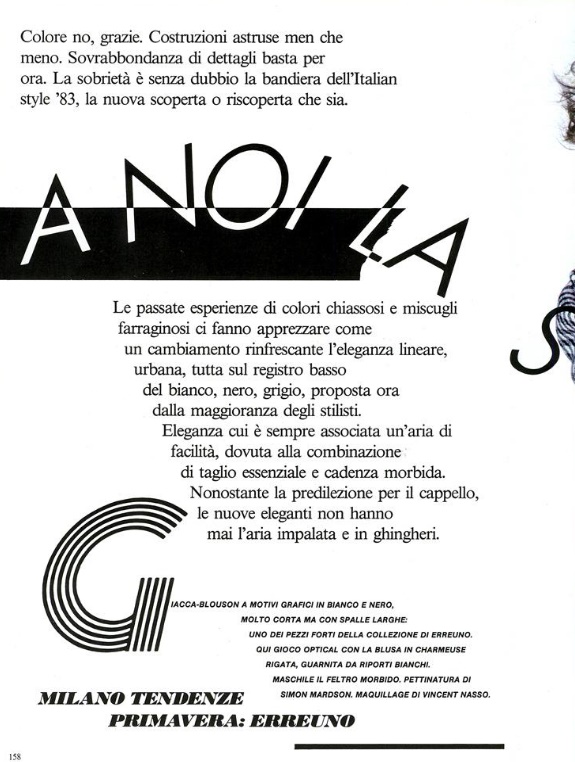 "nuovo bianco" VOGUE Italia, March 1983 Photographer: Dick Ballarian