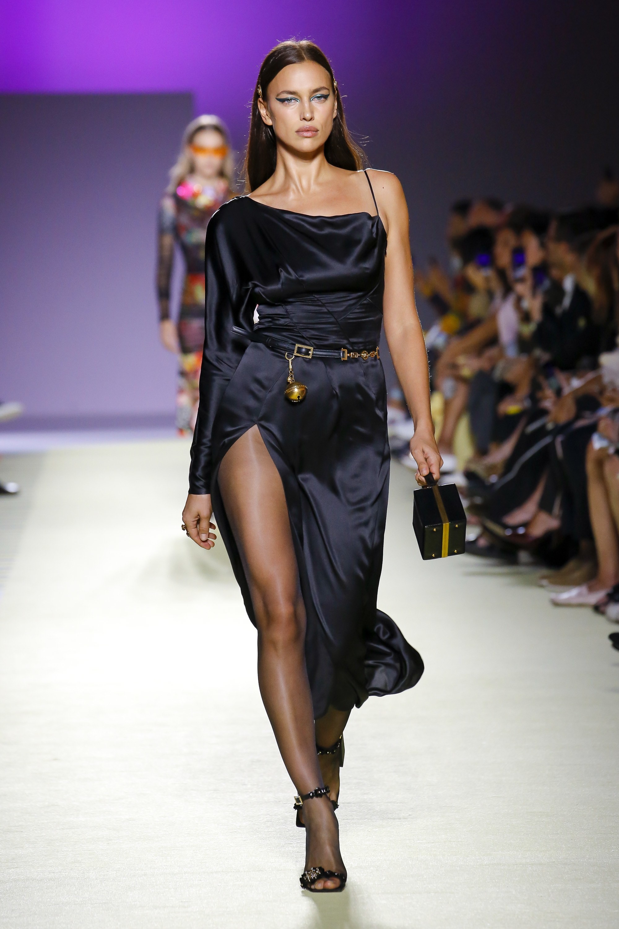 Irina Shaykh walks the runway at the Versace Ready to Wear fashion show during Milan Fashion Week Spring/Summer 2019 on September 21, 2018 in Milan, Italy.
