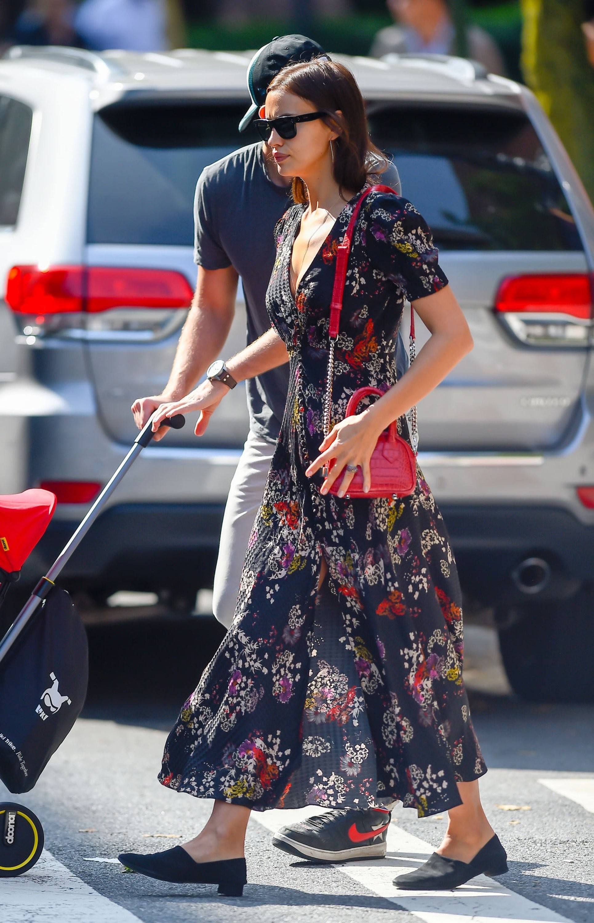 Irina Shayk arrives at the Versace show during Milan Fashion Week Spring/Summer 2019 on September 21, 2018 in Milan, Italy.