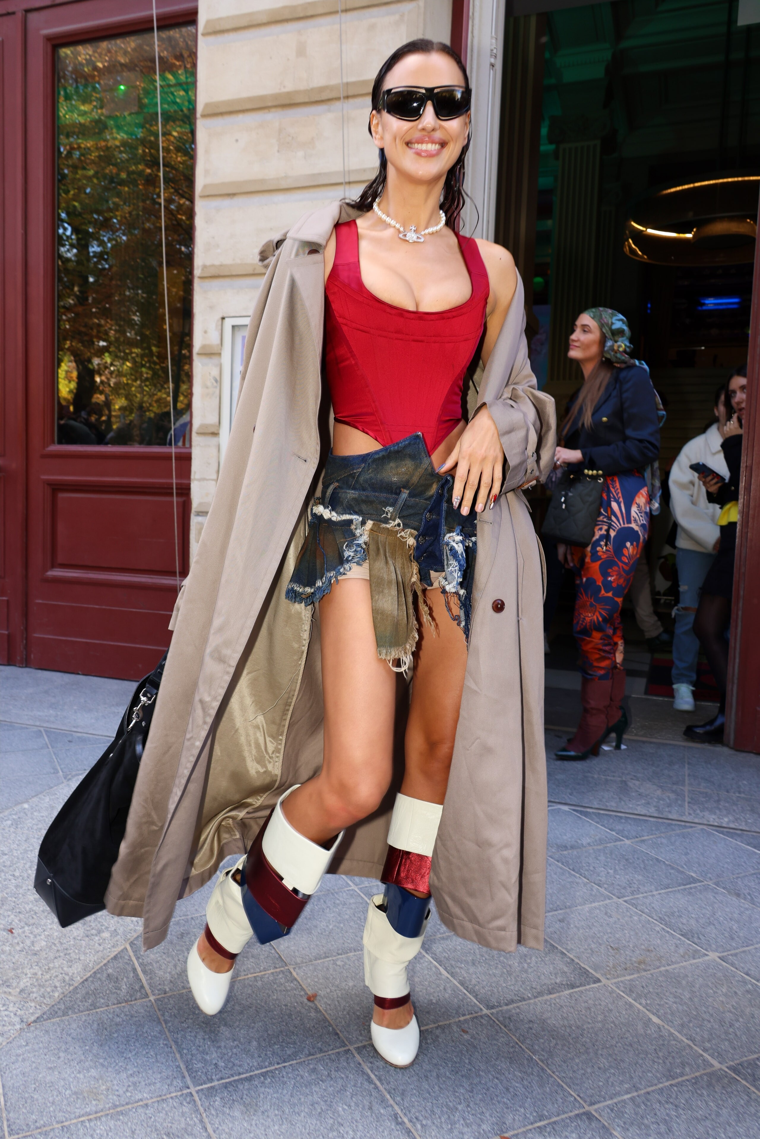leaving the Vivienne Westwood show as part of Paris Fashion Week on October 01, 2022 in Paris,