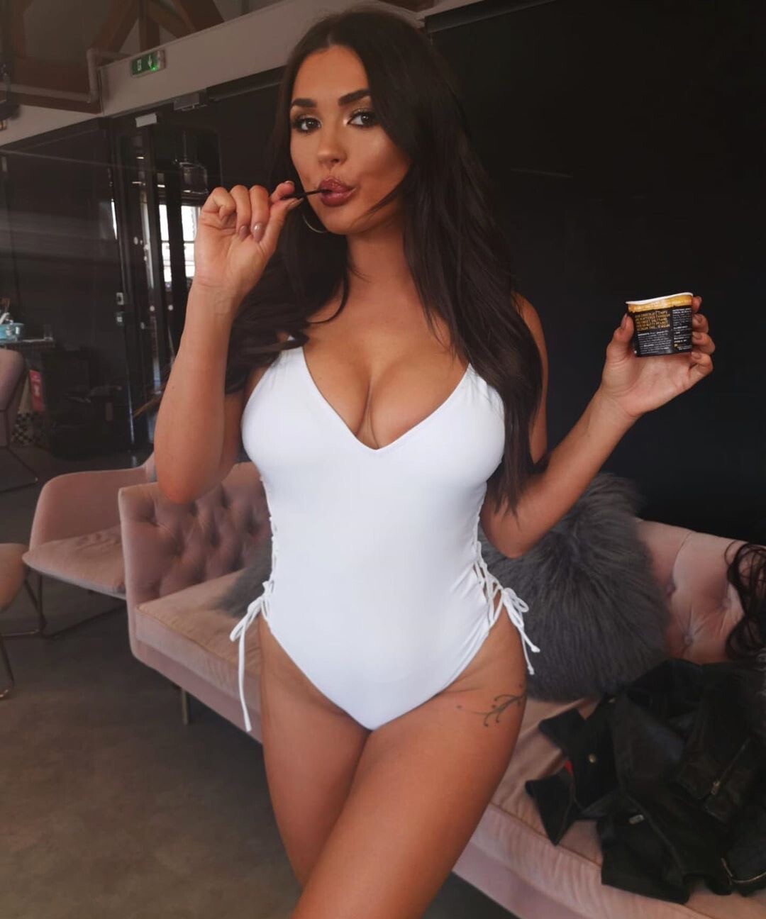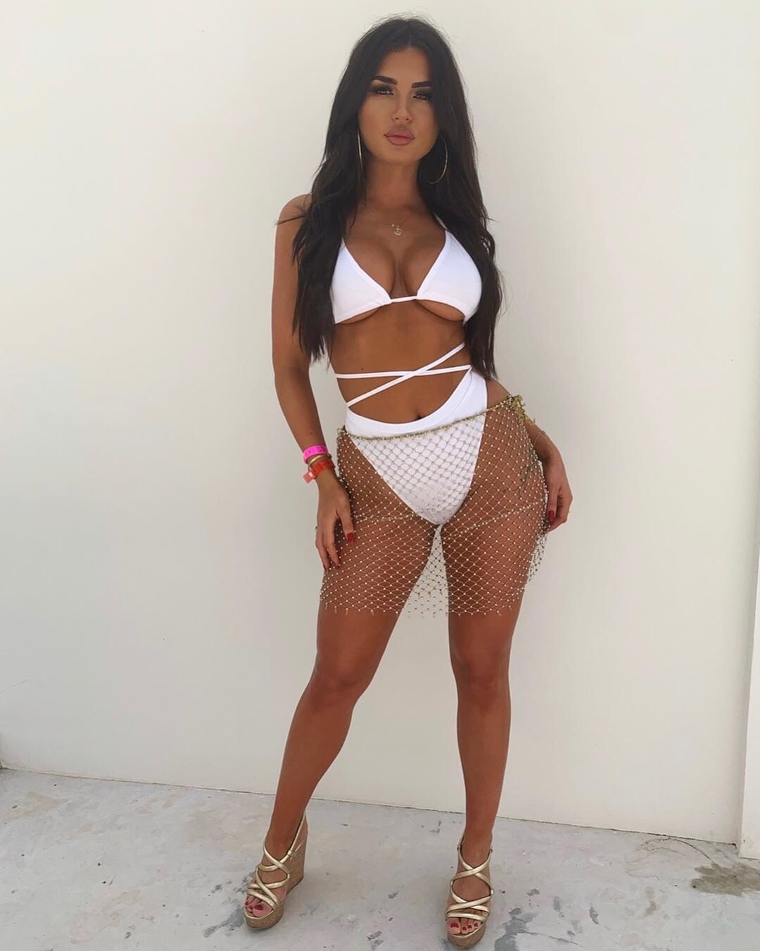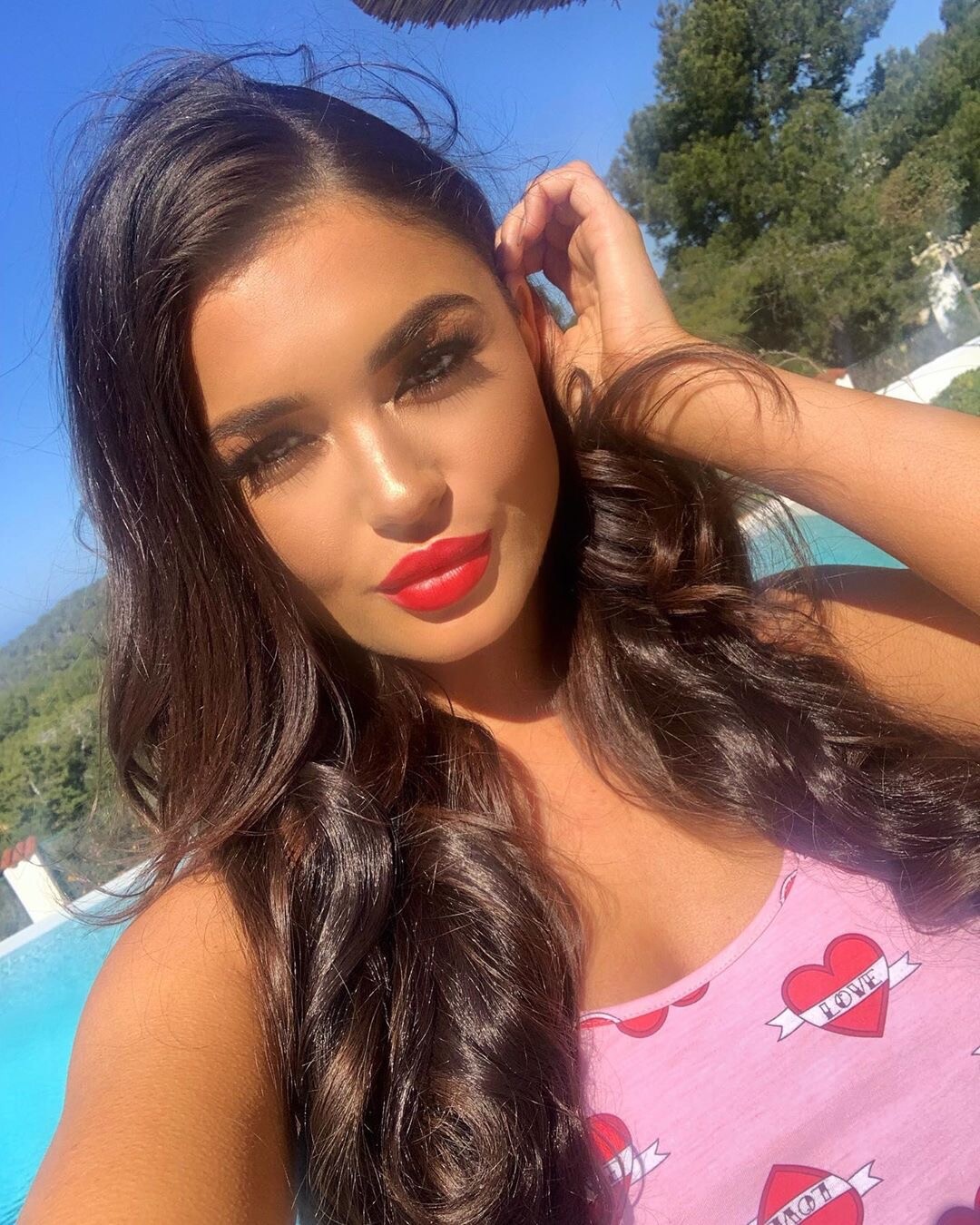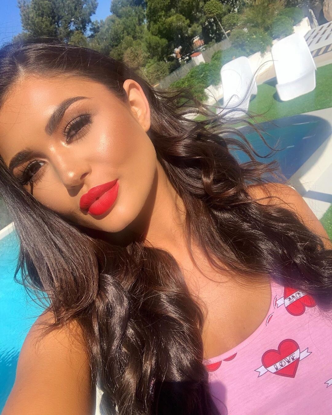 She's glamming it up by the poolside, but I love that polka dot dress.