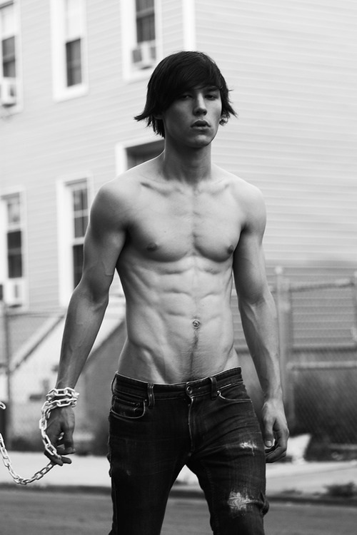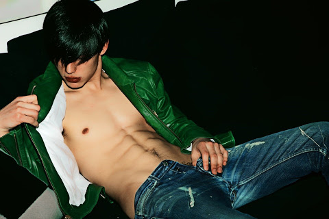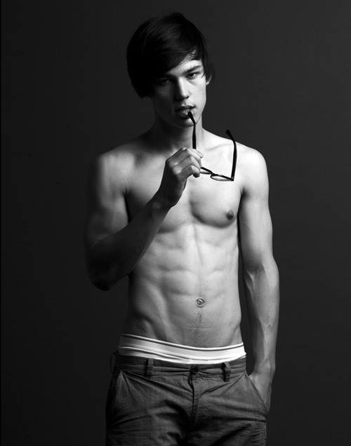 I love the way he looks geeky one moment and so sexy the next. And he certainly knows he's sexy - flashing that tight little body, delicious treasure trail and tantalising show of pubes.