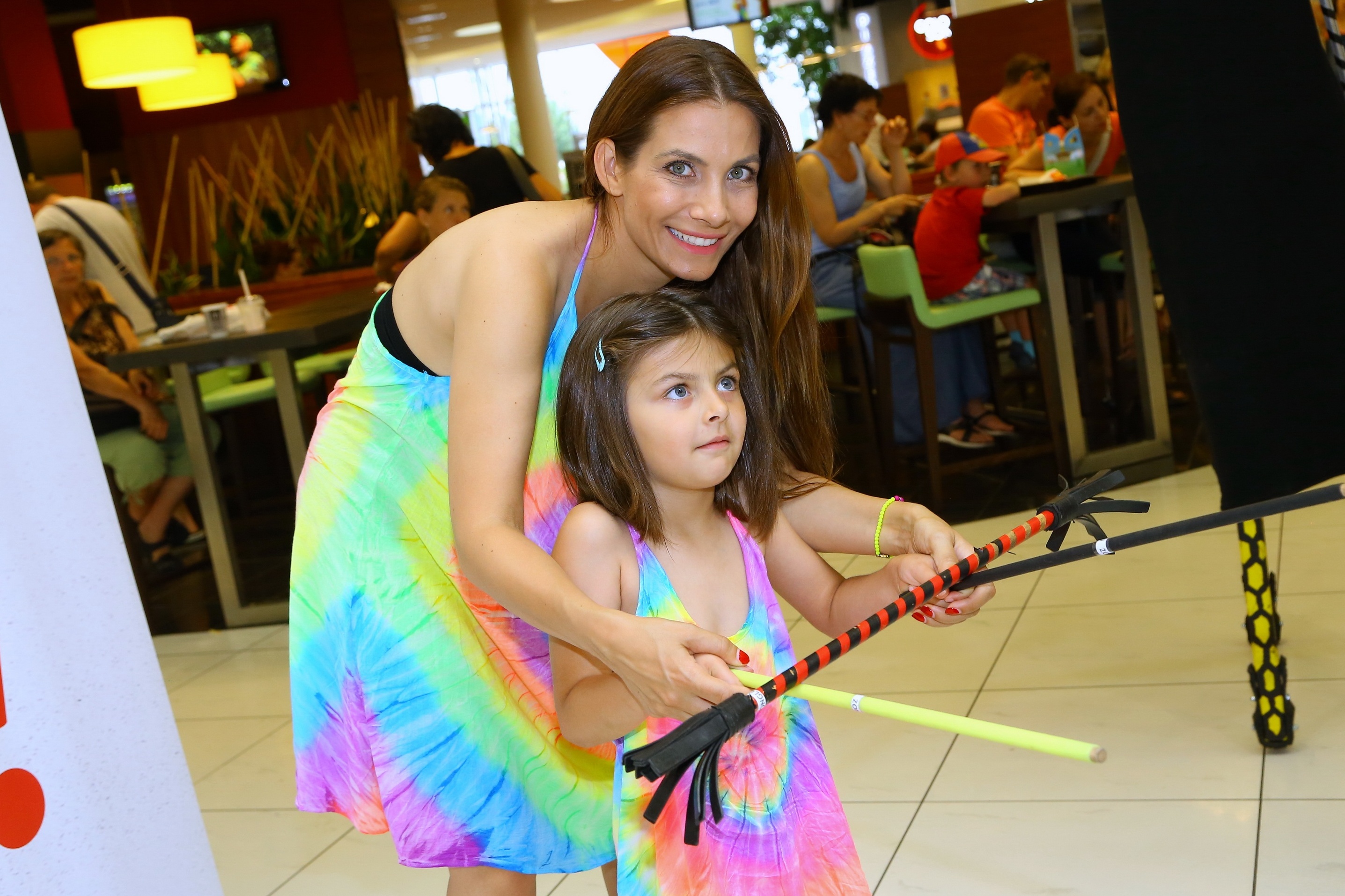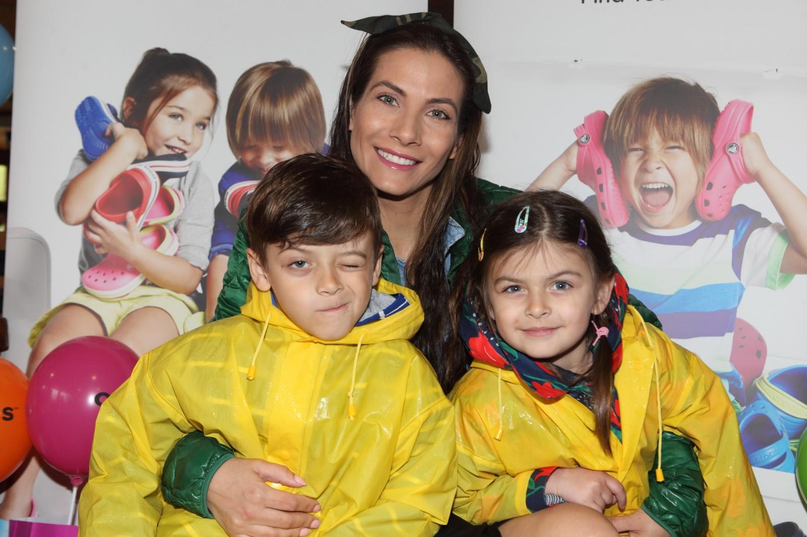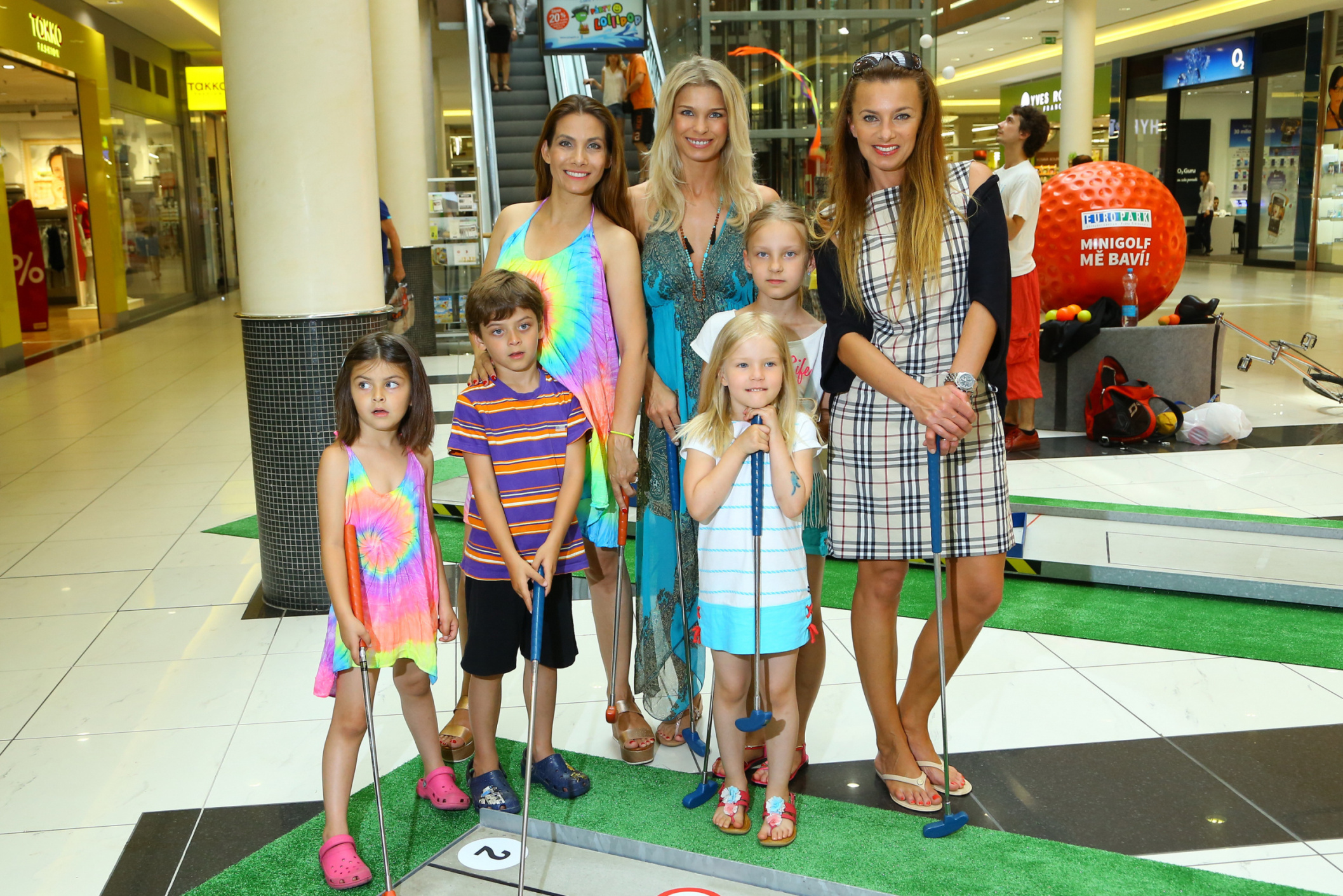 with her childern at the opening the season of the minigolf in shopping center EUROPARK, Prague, 25-06-2016