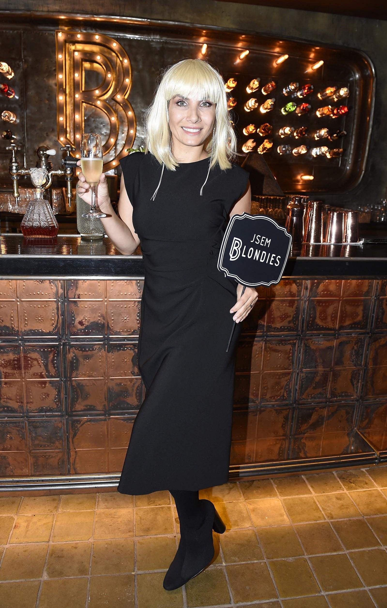 Eva in blonde wig at the opening party of the Blondies bar, Prague, 27.10-2017