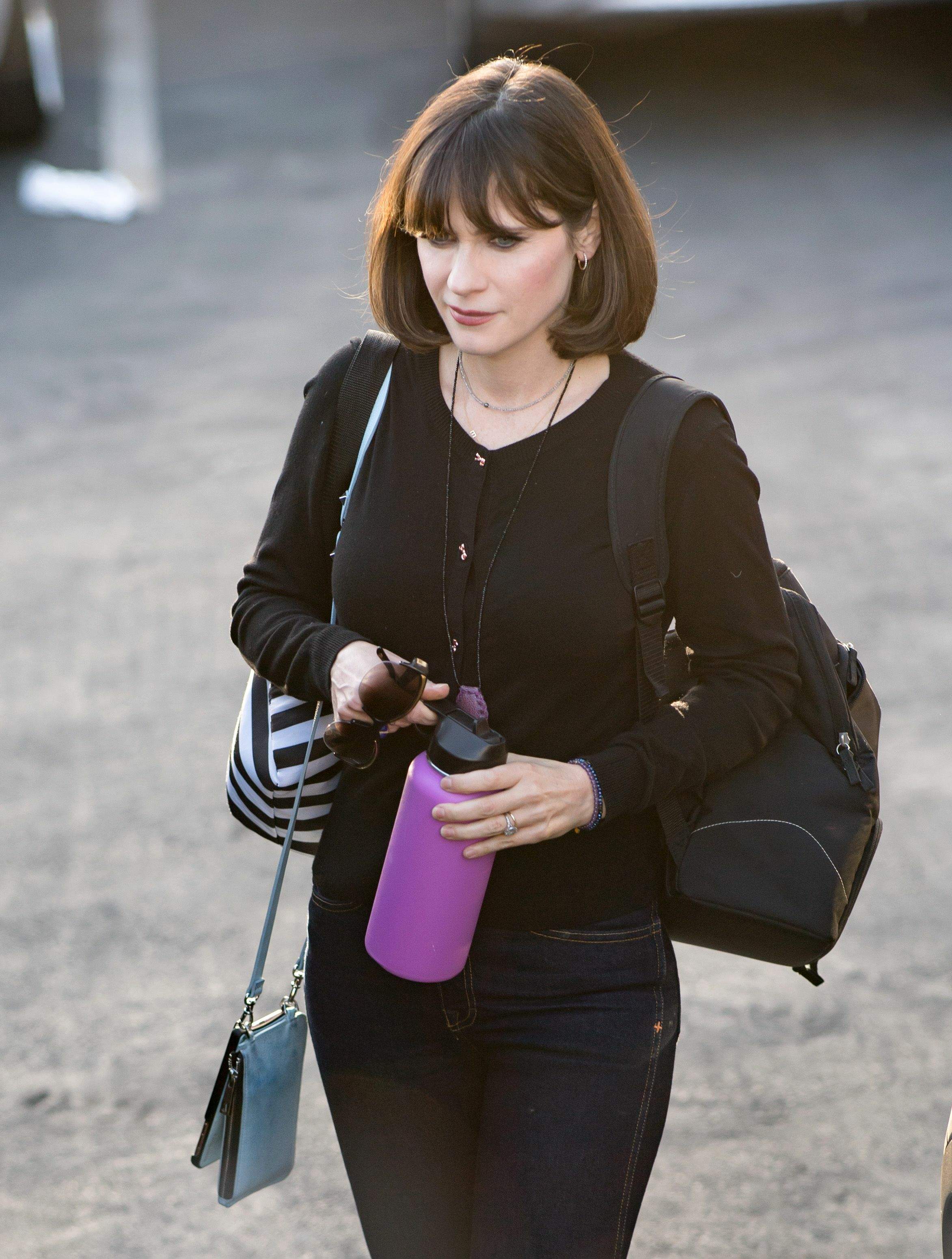 Zooey Deschanel celebrates donation of One Million backpacks from Baby2Baby, Kawhi Leonard and the L.A. Clippers to students across Los Angeles at 107th Street Elementary on August 20, 2019 in Los Angeles, California.