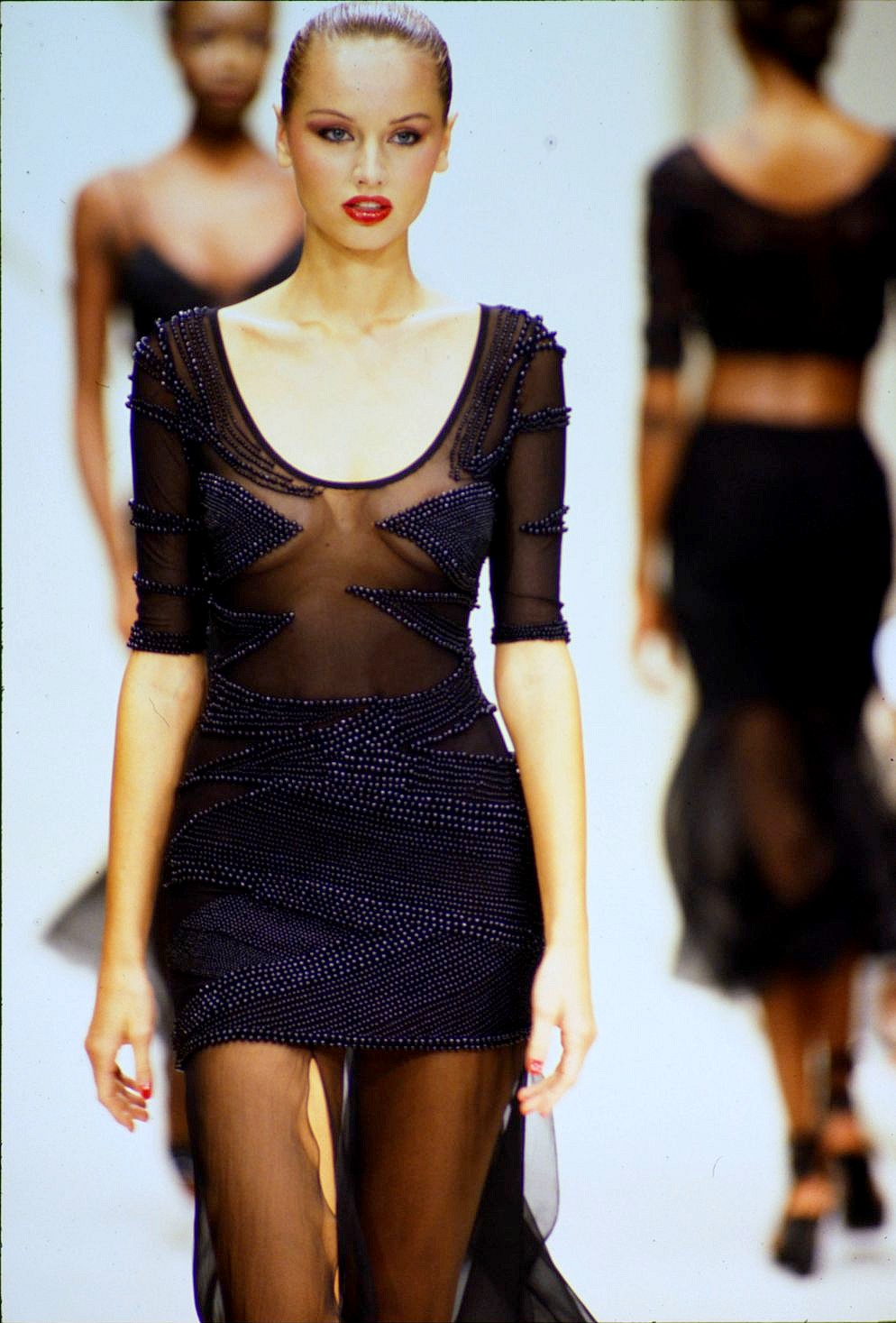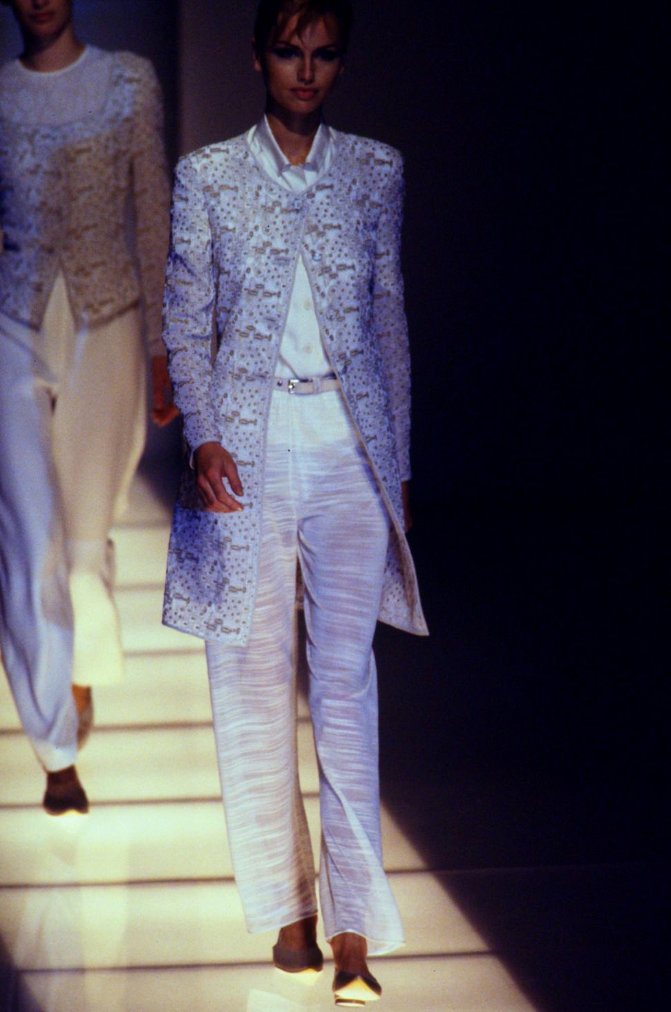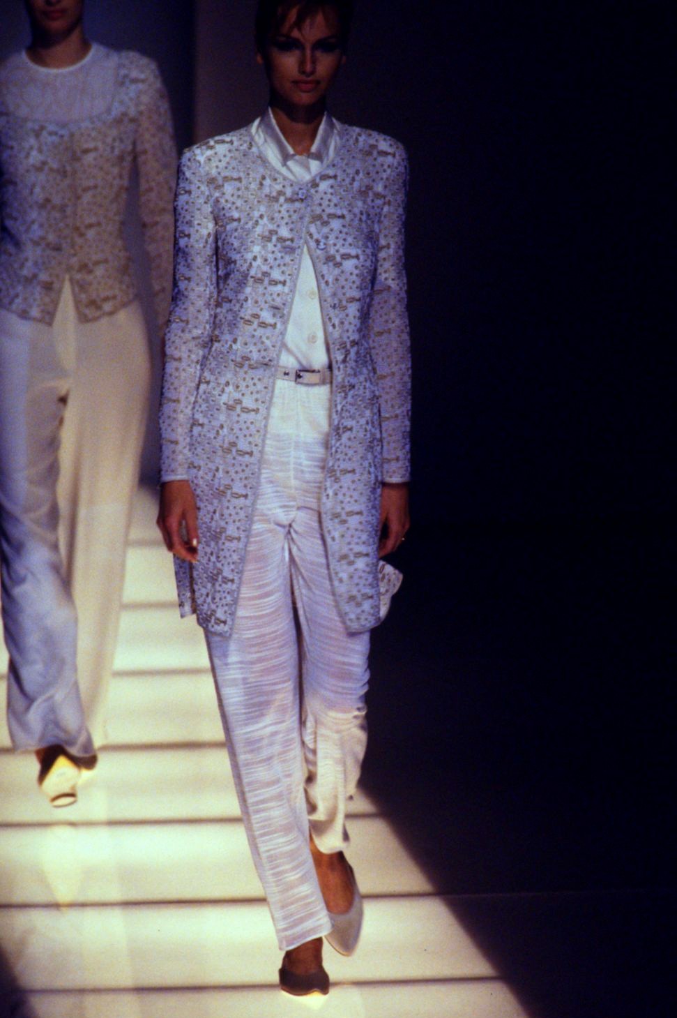 Closing the show as a bride on 00:01 and walking with Brian Rennie at 03:43 in the end: