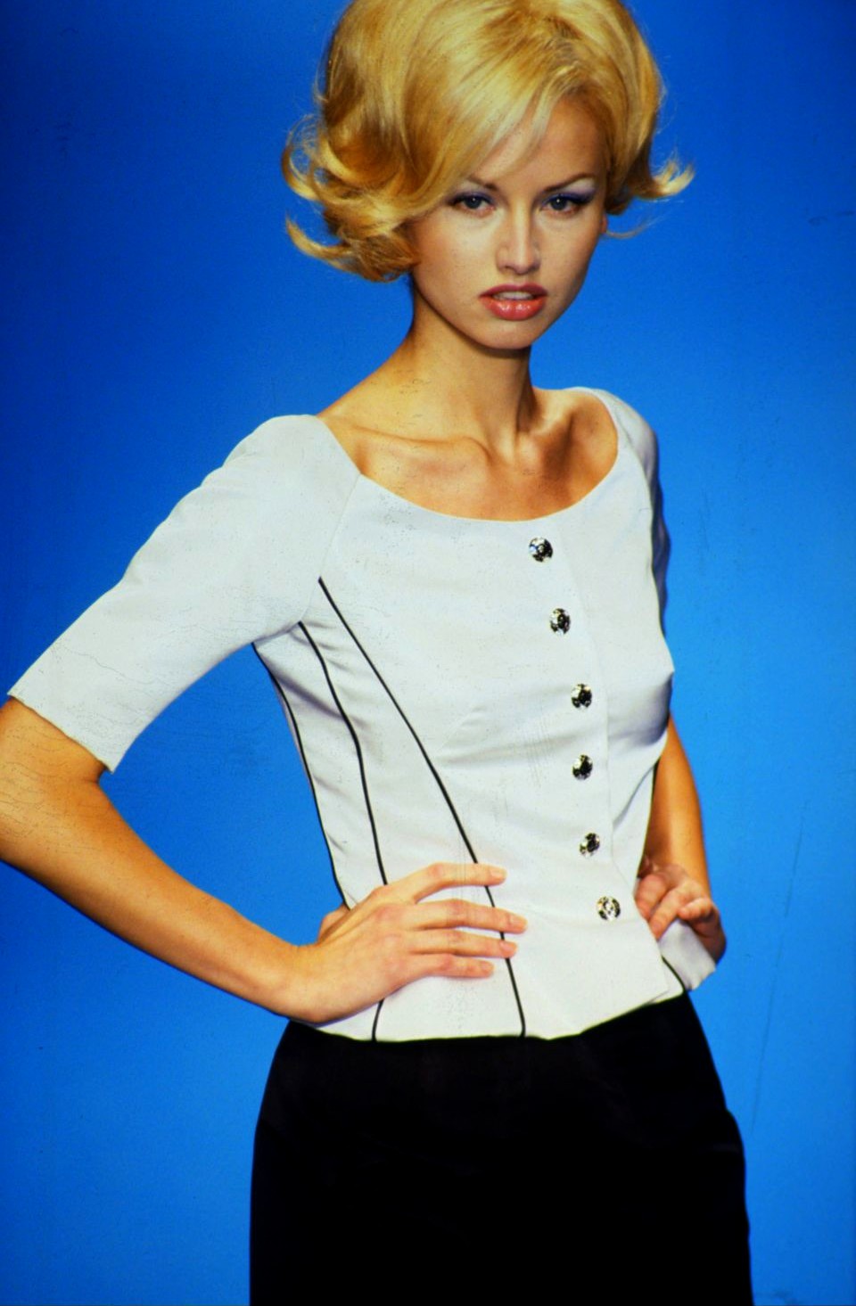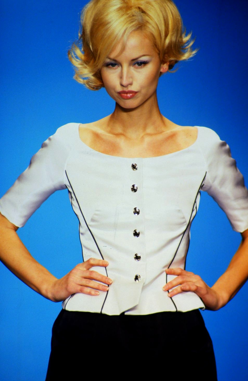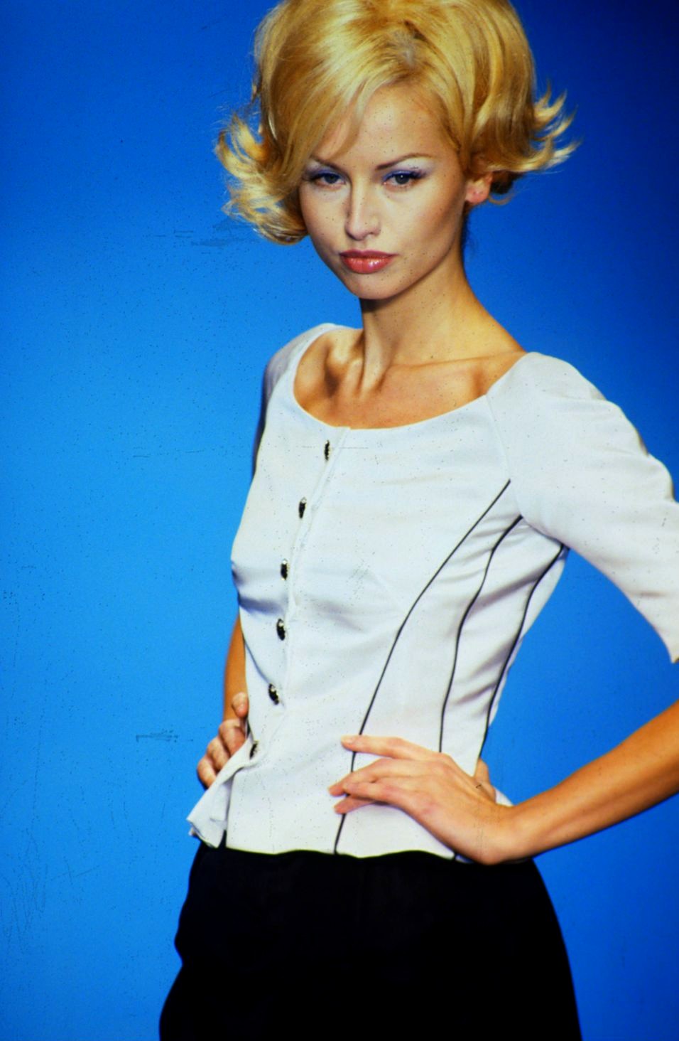 Closing the show as a bride on 00:01 and walking with Brian Rennie at 03:43 in the end:
