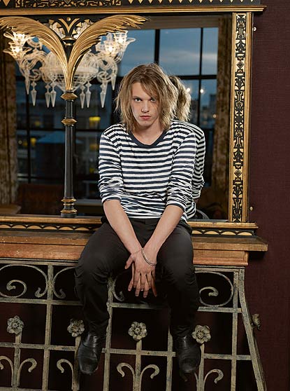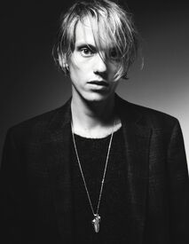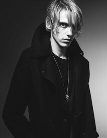 Jamie Campbell M. Bower (born 22 November 1988) is an English actor, singer and former model. Bower is best known for his role as Anthony Hope in Tim Burton's Sweeney Todd: The Demon Barber of Fleet Street, his role of Caius in The Twilight Saga: New Moon and his role of King Arthur in the Starz original series Camelot. He also appeared as the young Gellert Grindelwald in Harry Potter and the Deathly Hallows - Part 1 and will play Jace Wayland in the upcoming film adaption of the first book of The Mortal Instruments. He is engaged to co-star Bonnie Wright who plays Ginny in Harry Potter.