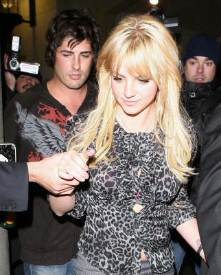 With Paris Hilton nowhere in sight, Britney Spears settled for a D-list sidekick last night.TMZ spotted the pop star-turned-trainwreck at the Roosevelt Hotel last night, and while she finally kept her goodies to herself, she had a posse even more pathetic than her recent late-night peep shows. Among the hangers-on; Hilton BFF Brandon "Greasy Bear" Davis.