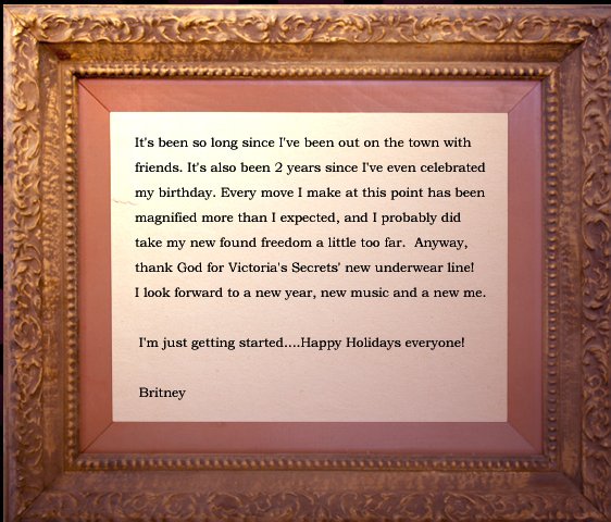 Lately, you've been seeing pics of me and Britney partying (blah blah) and she knows that some of her fans are very upset about what they call her "behavior" and sadly they're blaming the issue on her being friends with me. Yeah, me and Brit have become really close in the past few weeks, and we've gone out alot in the past few nights, but I never influence anything she does, and neither does anyone else.