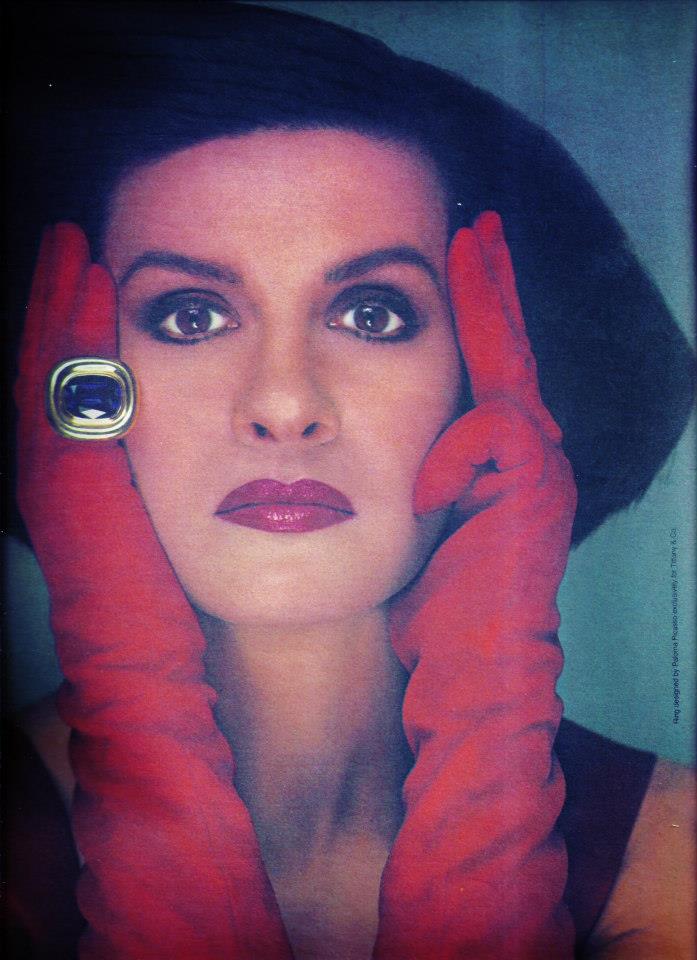 In 1980 Picasso began designing jewelry for Tiffany & Co. of New York. Her early creations mixed color and varying gemstones in bold designs. She had long used the dove symbol and the color red as signatures of her work which she exploited throughout her career.