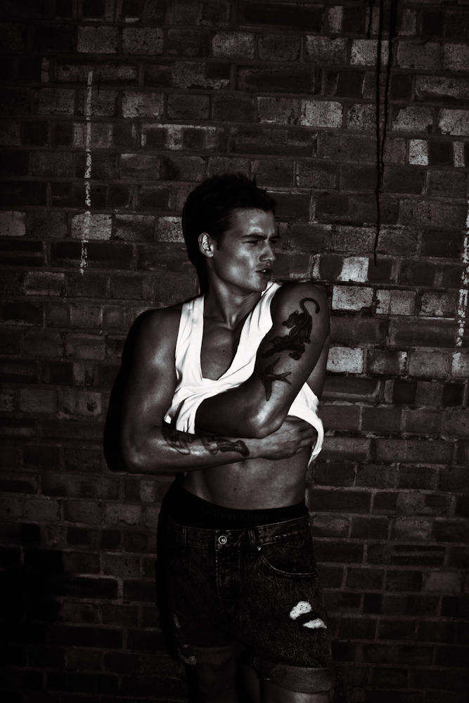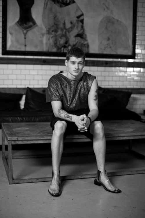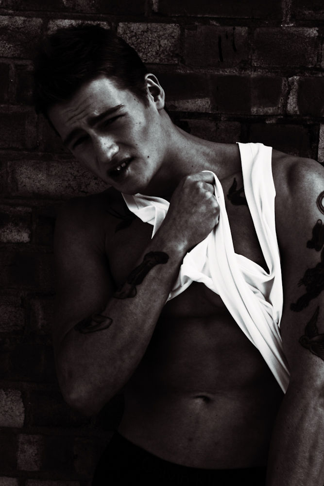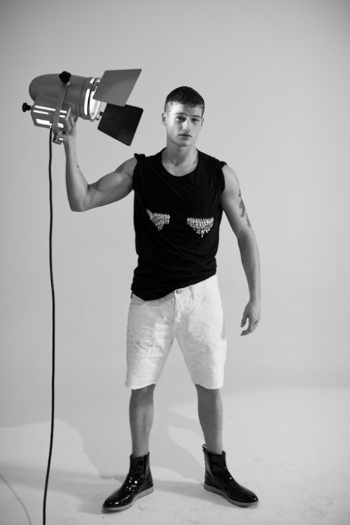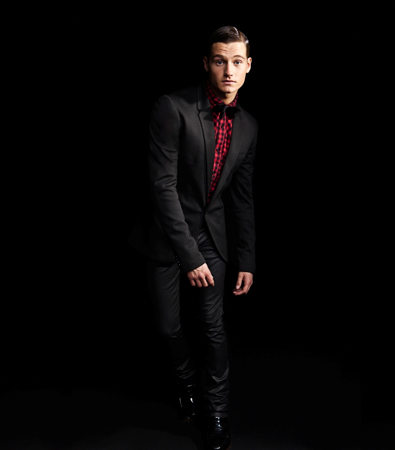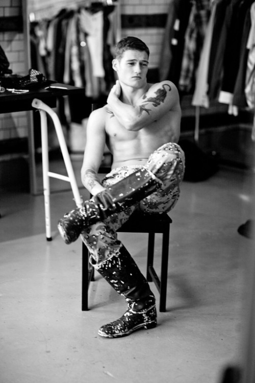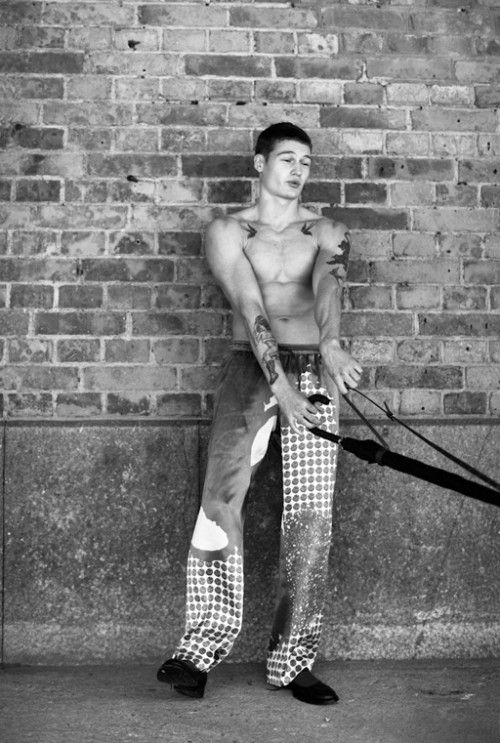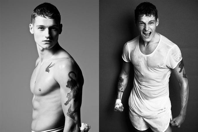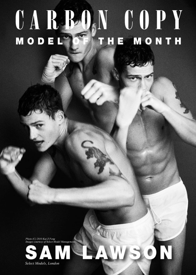 For Zara's November 2011 lookbook, they tapped British model and boxer Sam Lawson to front not only their Young lookbook but also dresses the hard-bodied Sam in their sophisticated Eveningwear collection.