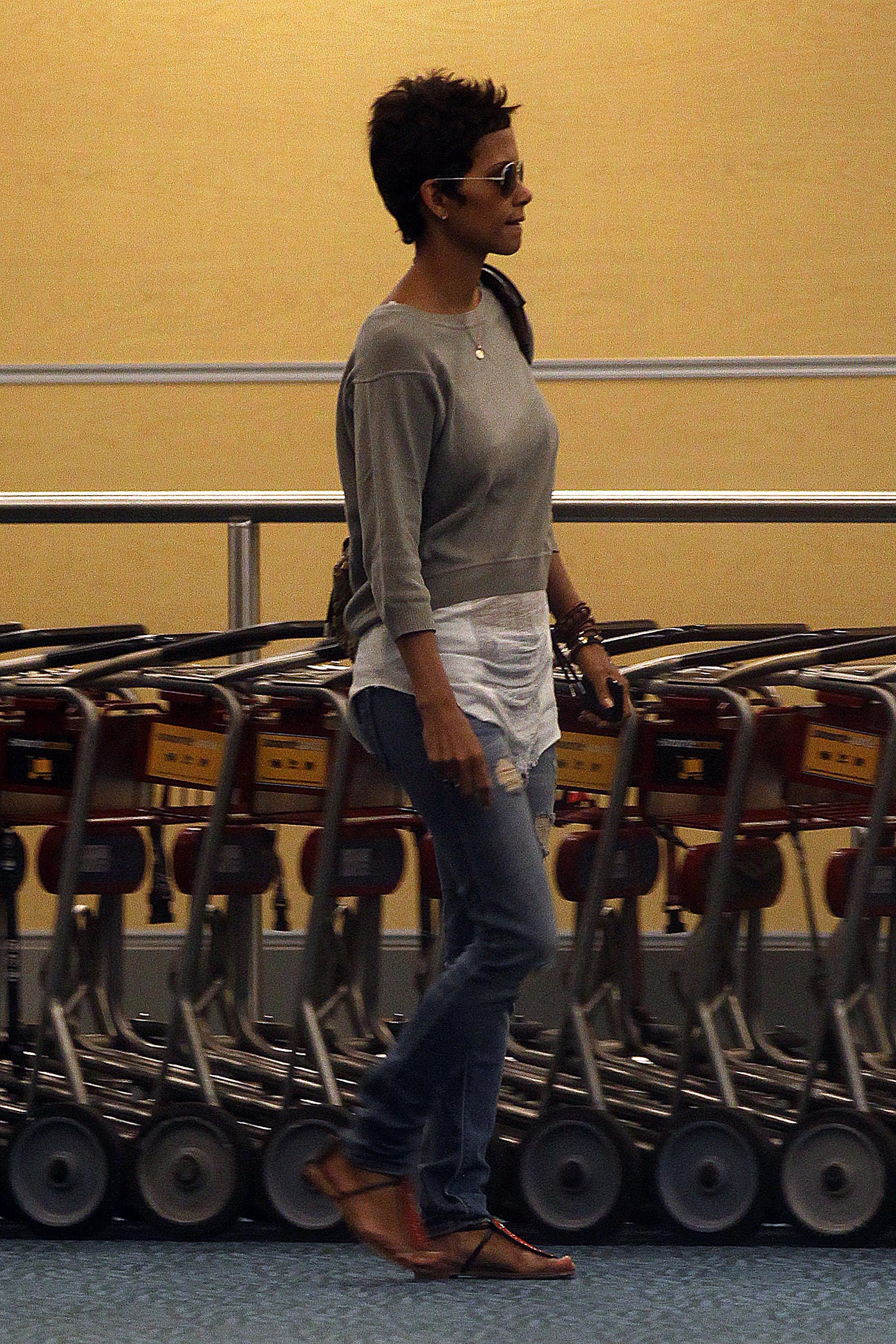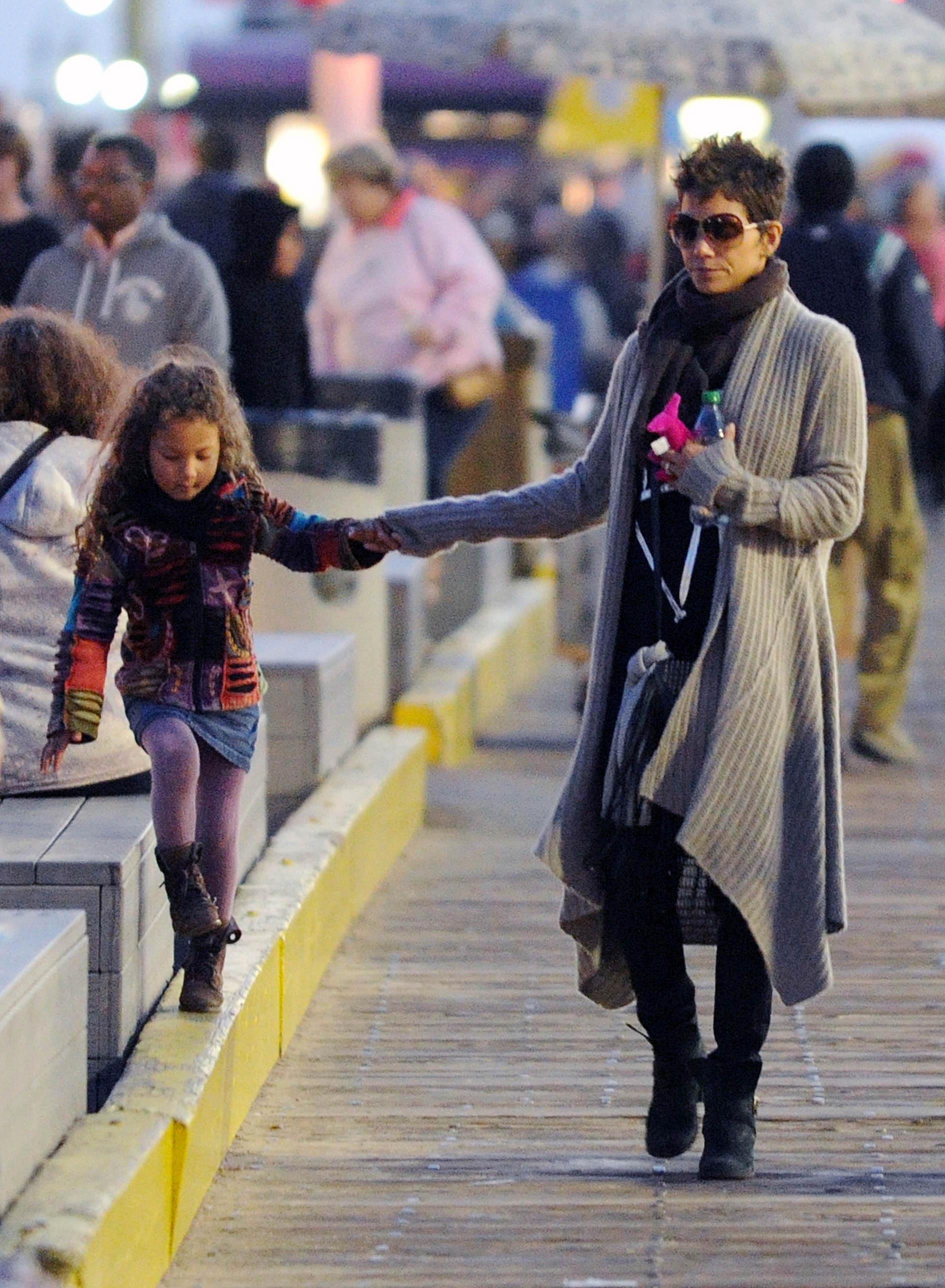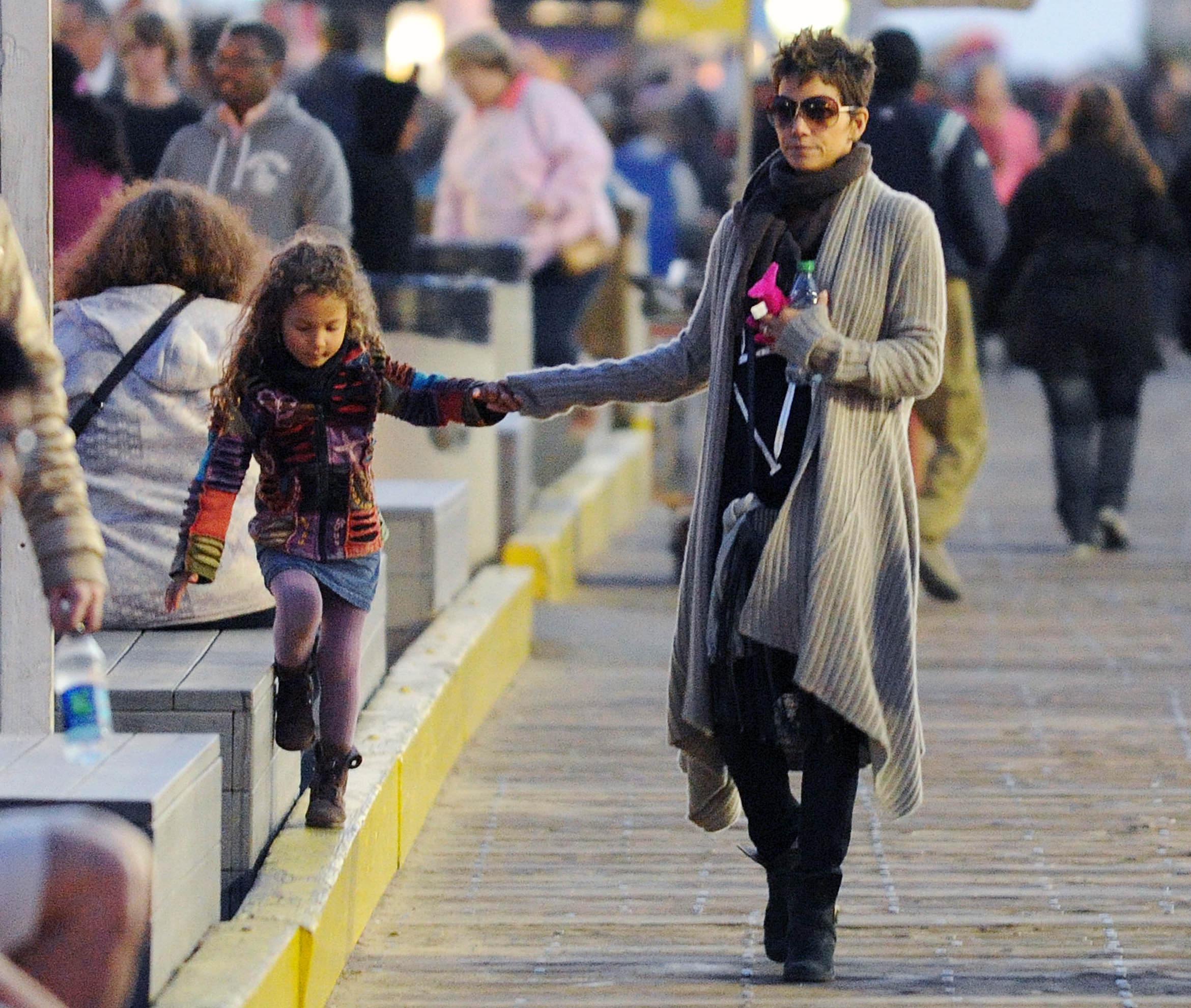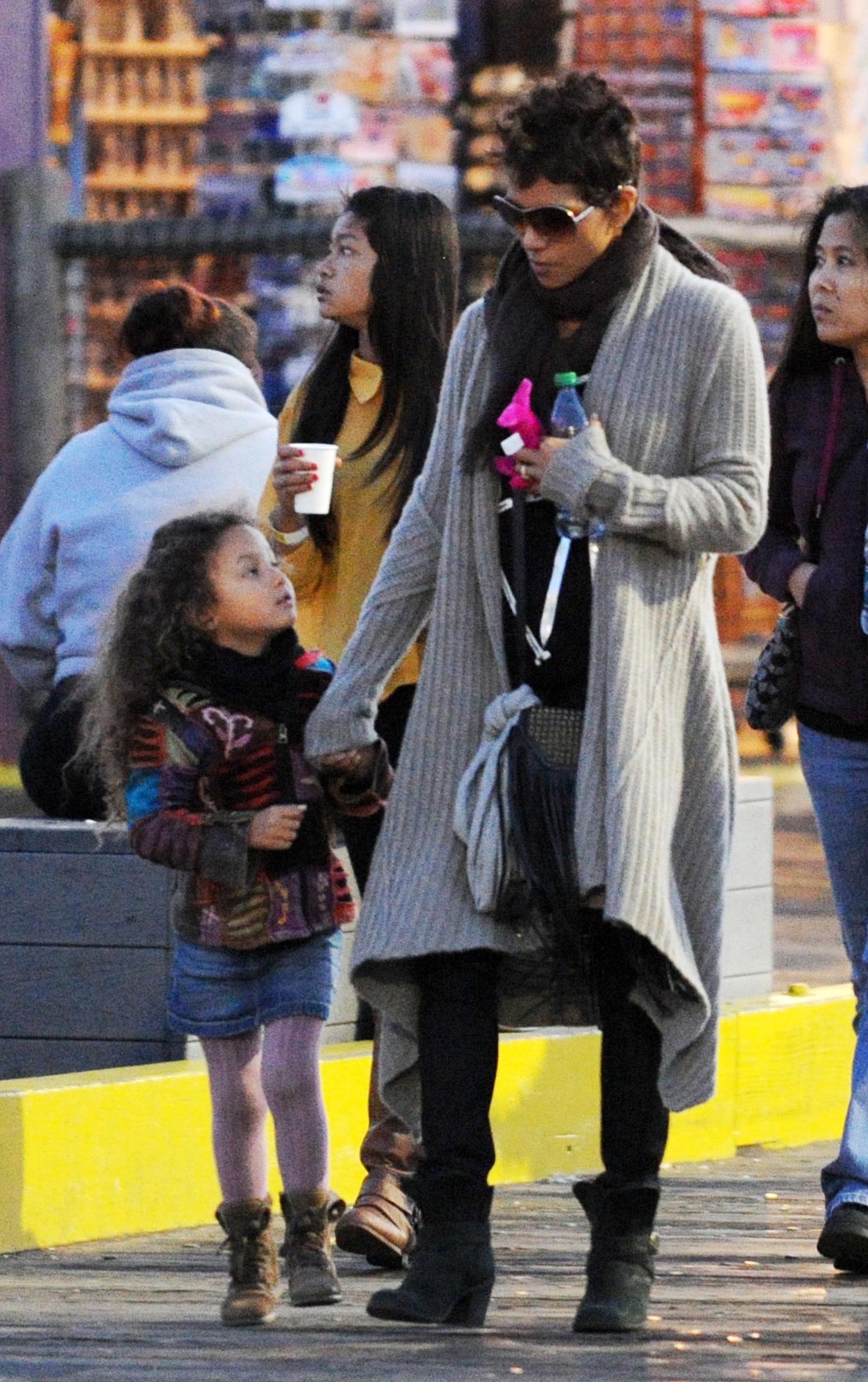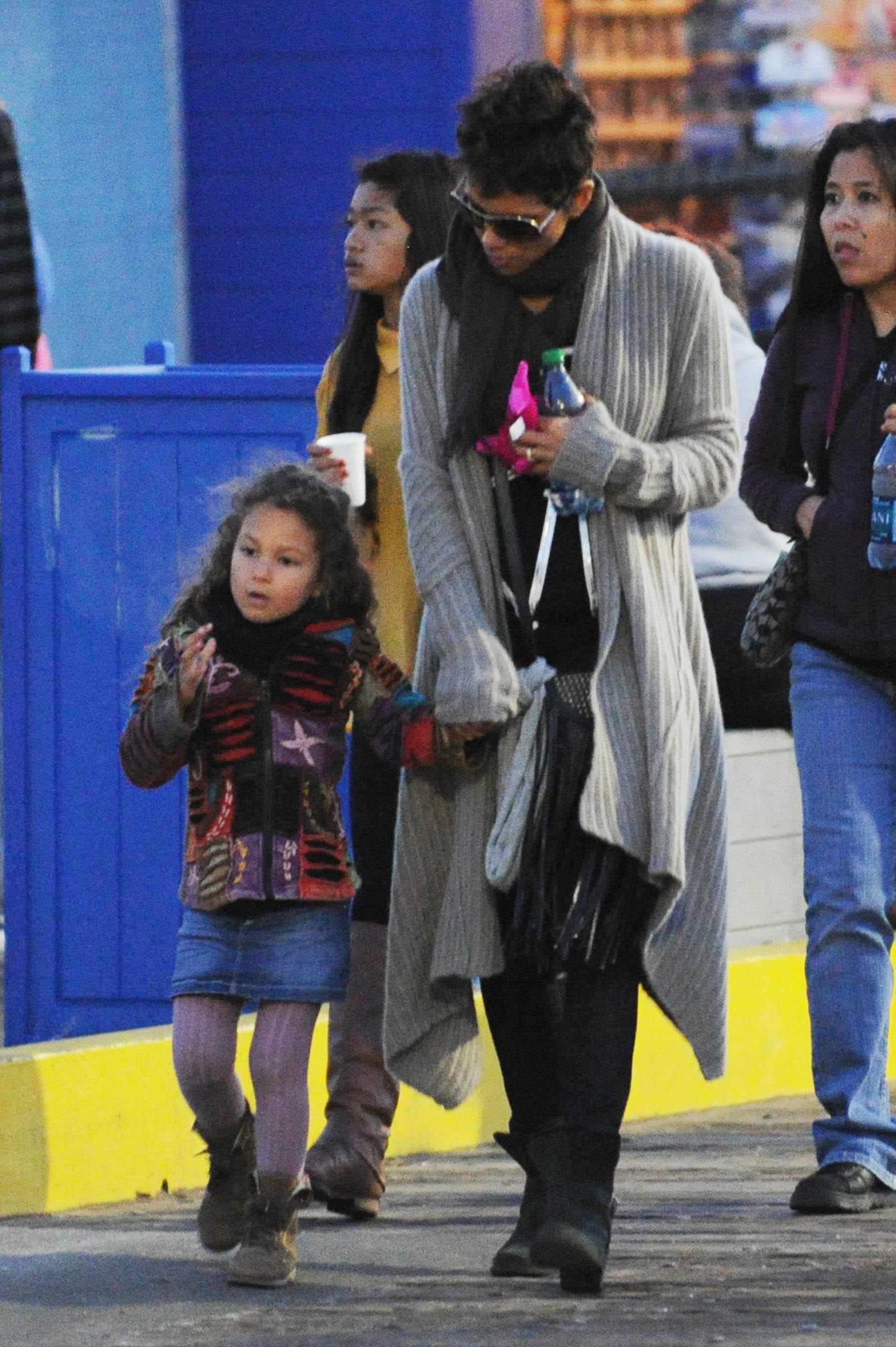 The shirt looks very nice on him. Halle looks as thrilled as a thrilled thing on a thrilling holiday. No ring today?