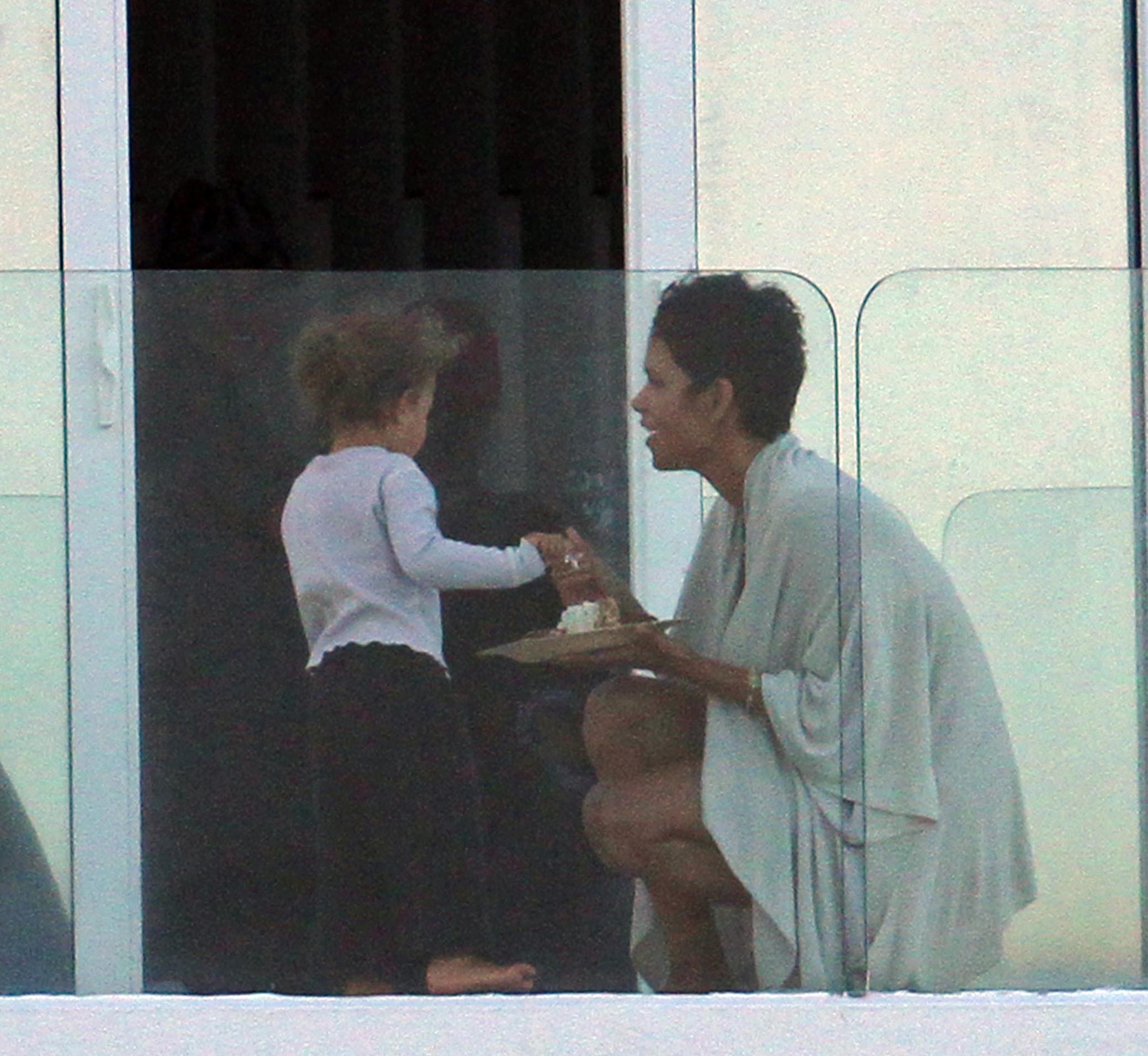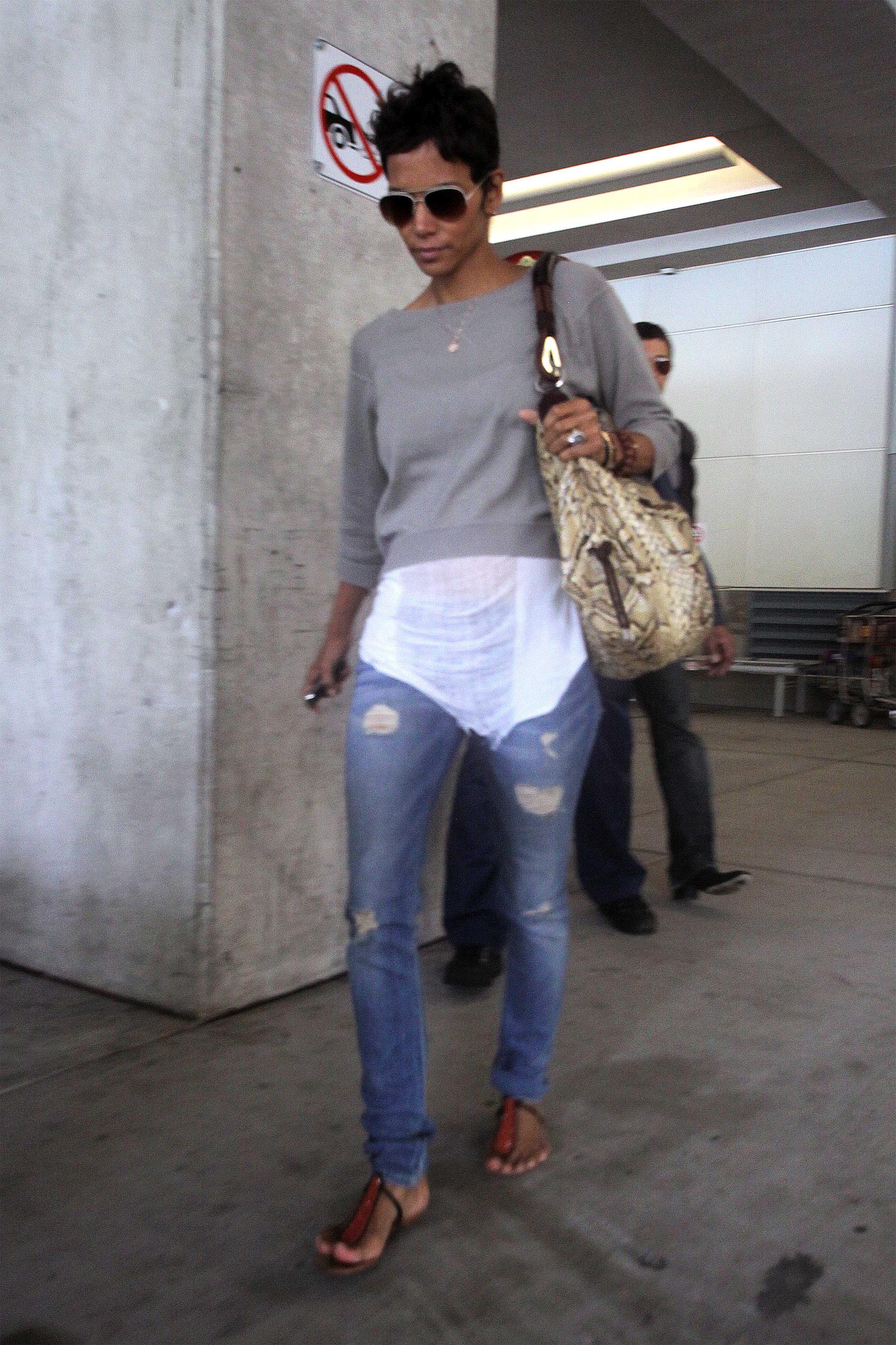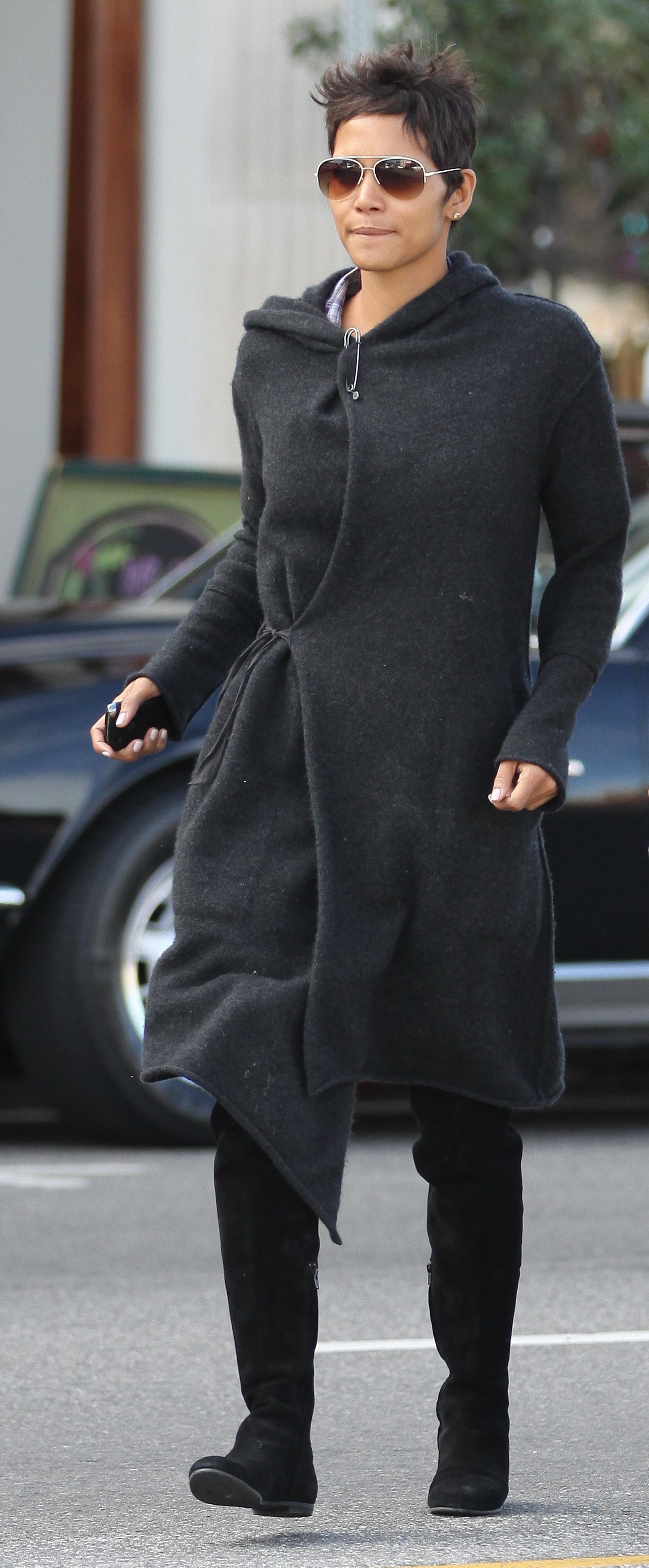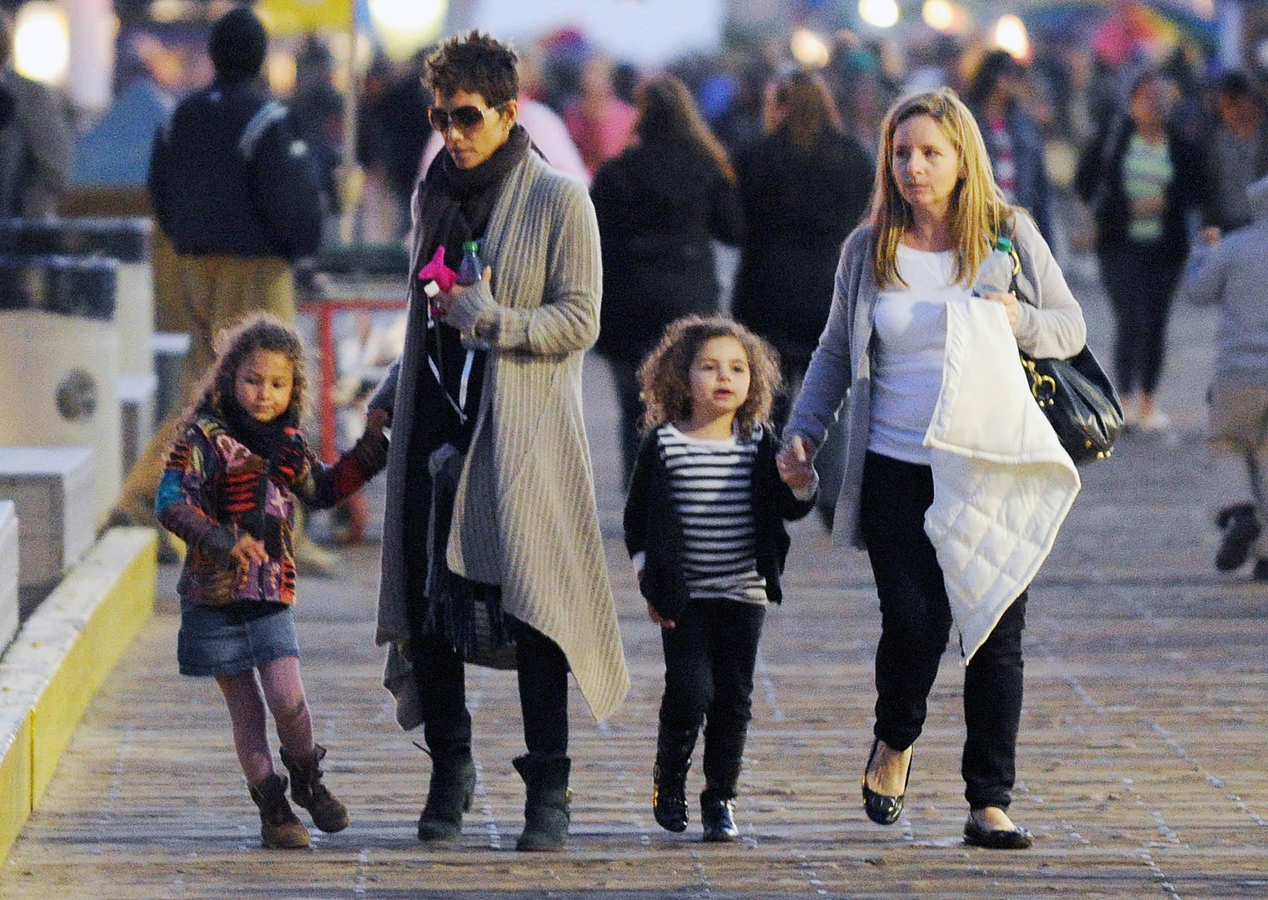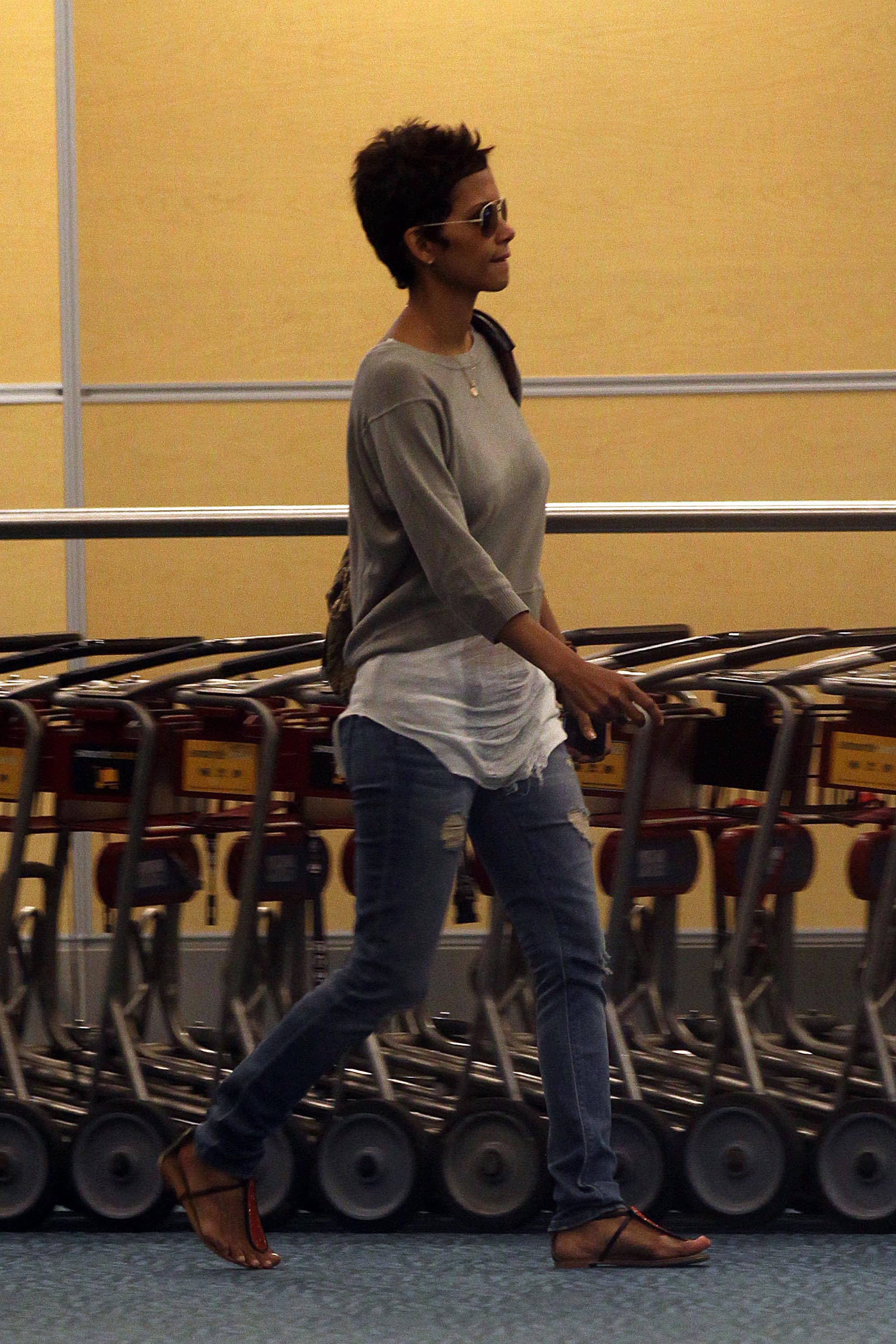 The shirt looks very nice on him. Halle looks as thrilled as a thrilled thing on a thrilling holiday. No ring today?