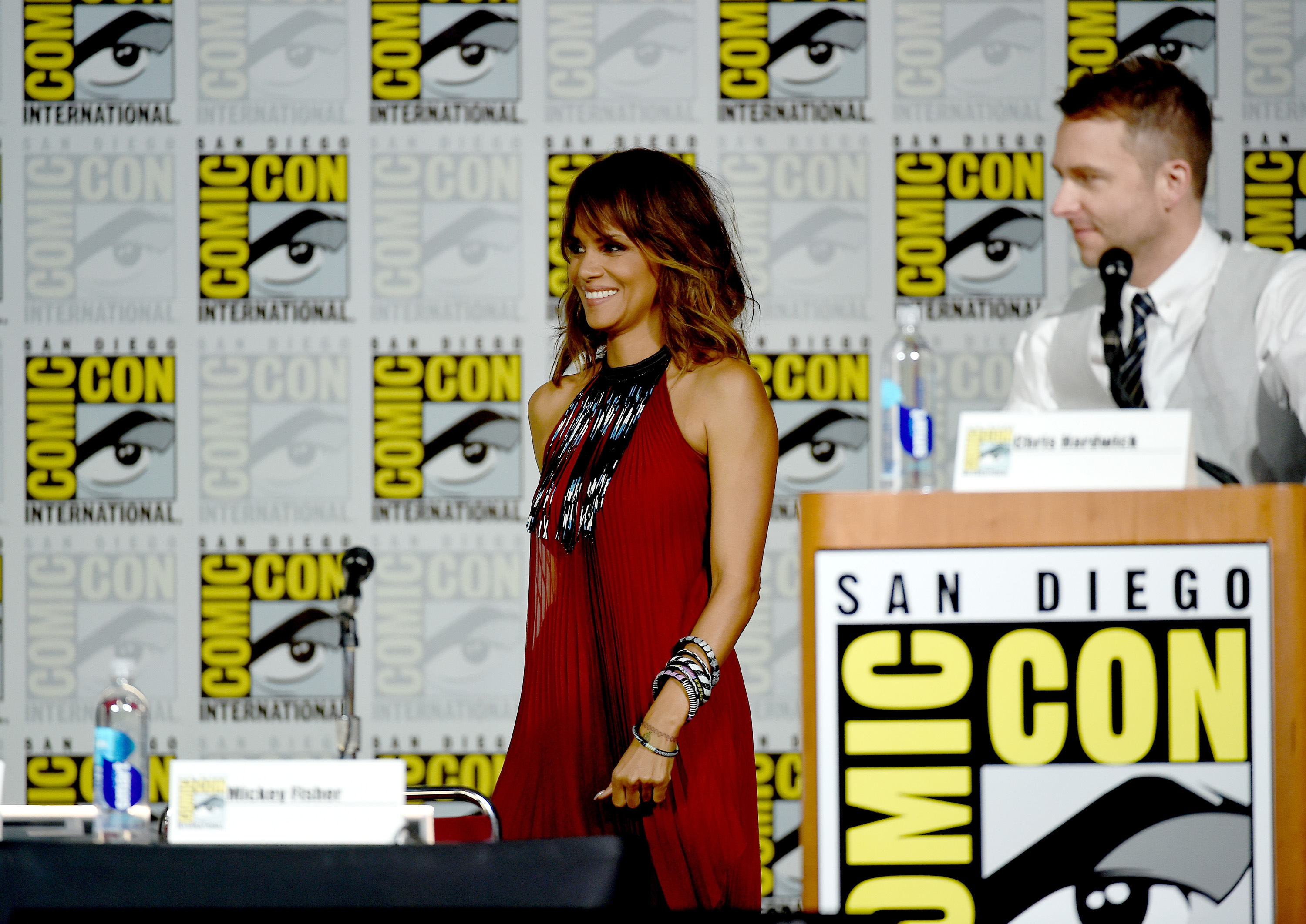 Actress Halle Berry walks onstage during the CBS TV Studios' panel for "Extant" during Comic-Con International 2015 at the San Diego Convention Center on July 9, 2015 in San Diego, California