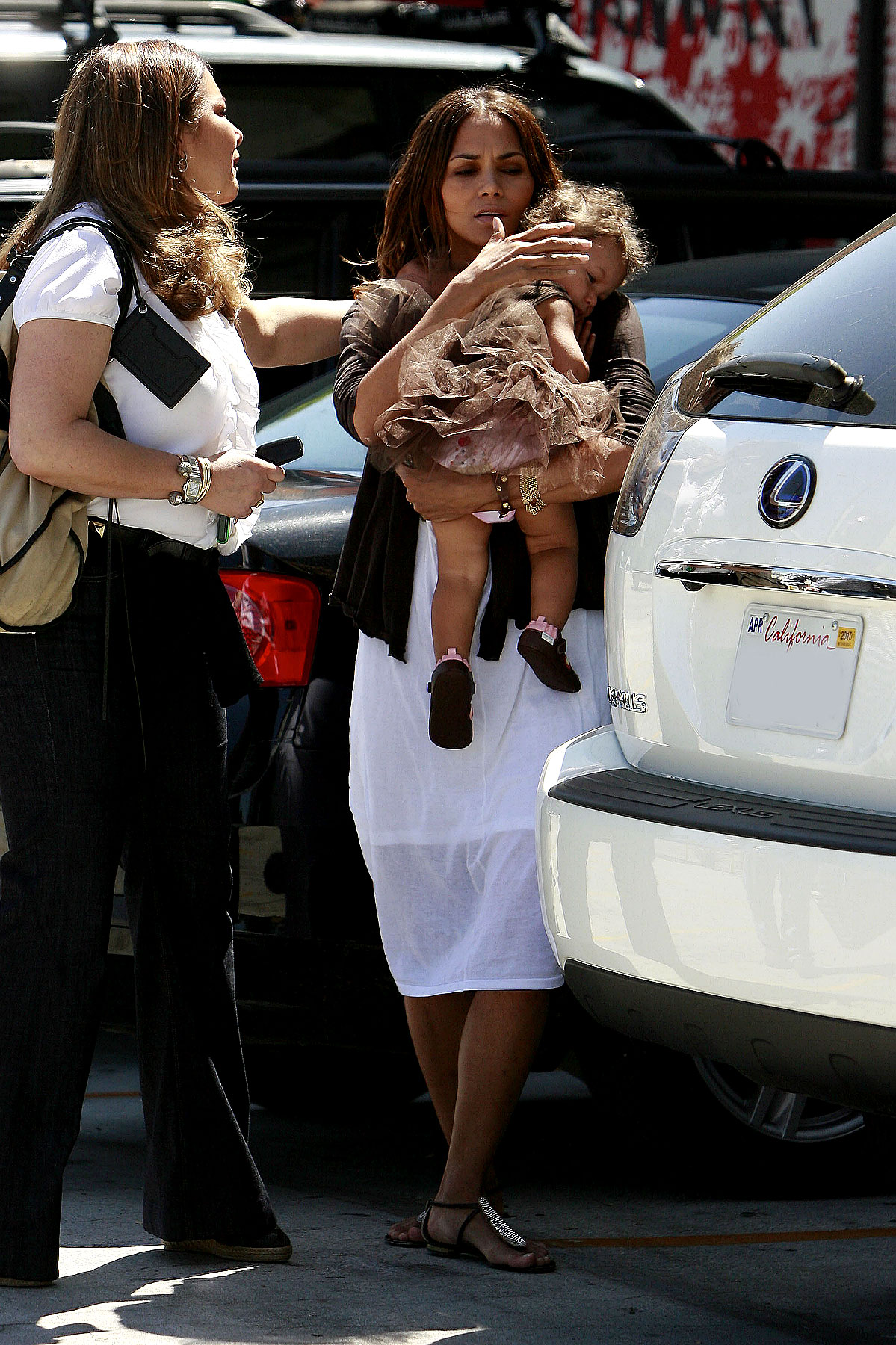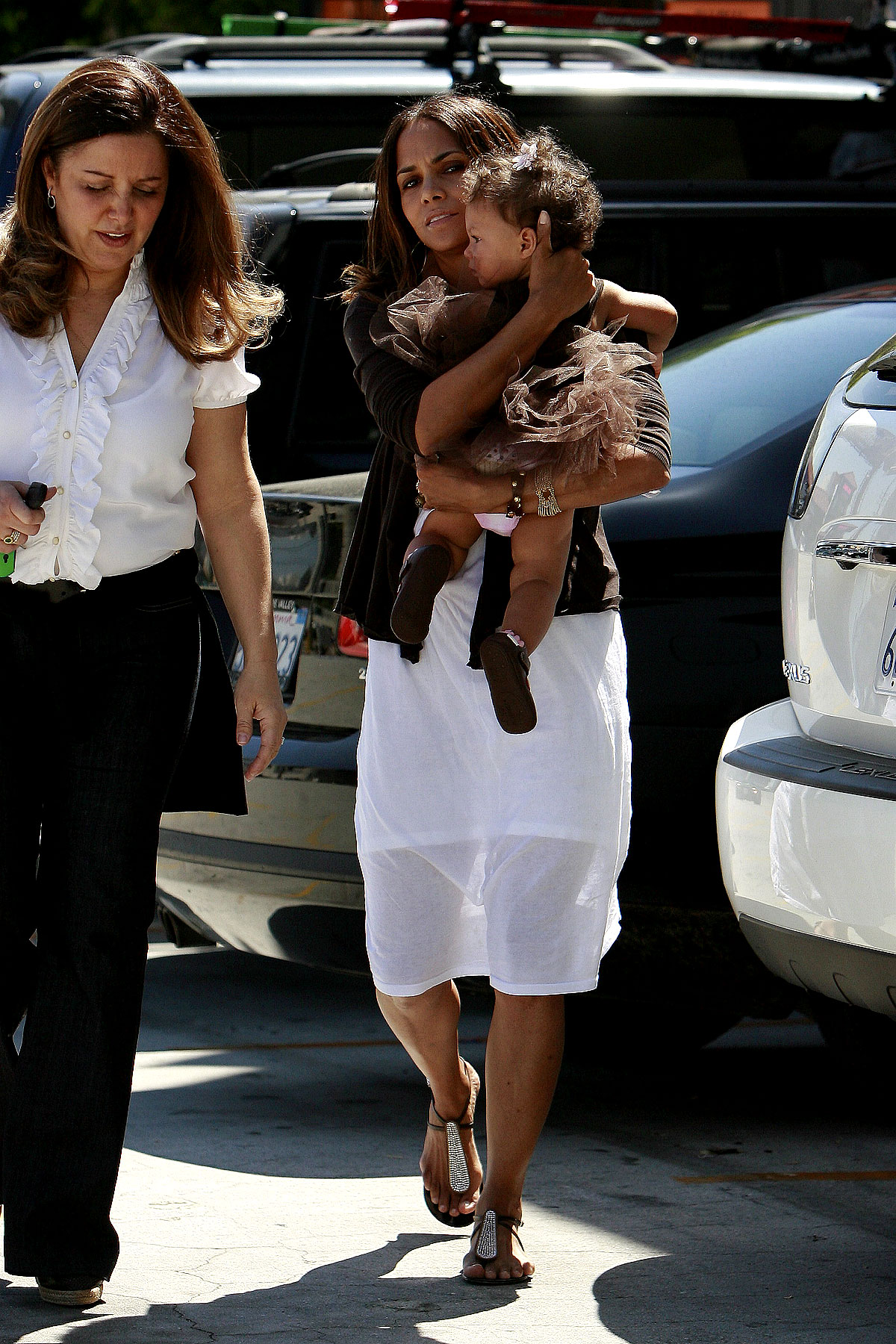 Halle Berry takes her adorable daughter Nahla to fill up the car at a gas station on Saturday in Santa Monica, Calif.