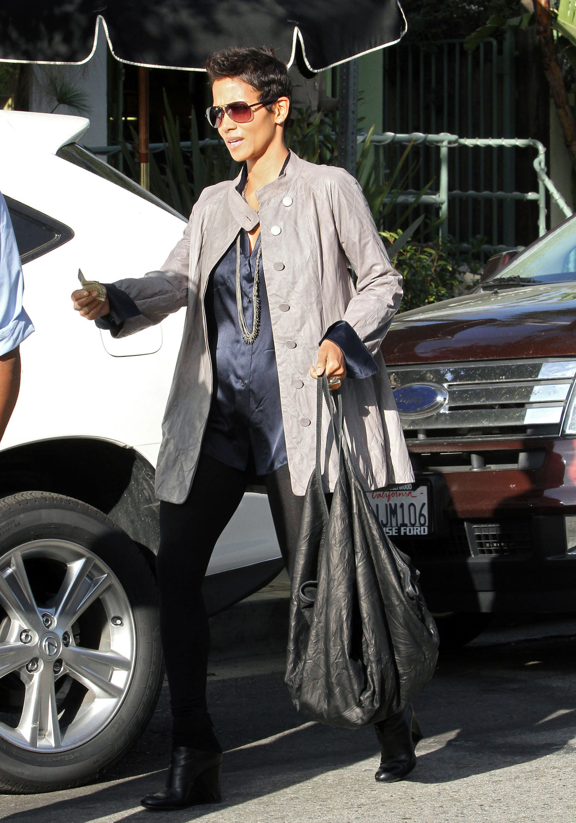 Halle Berry waits for her car after having lunch at Los Angeles’ Piccolino’s Cafe - and tips the valet a $20! - on Monday (November 9).