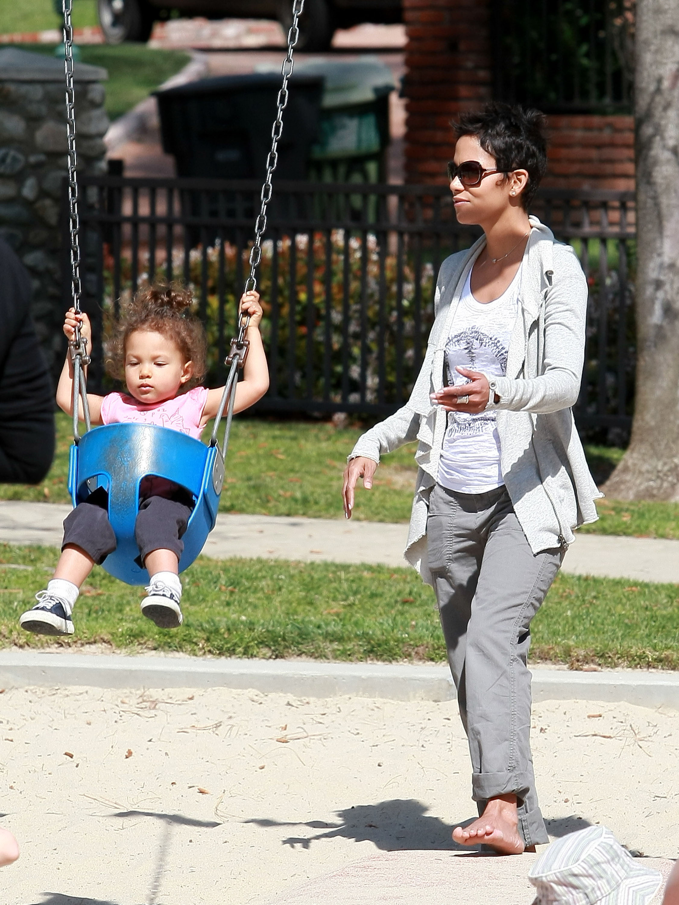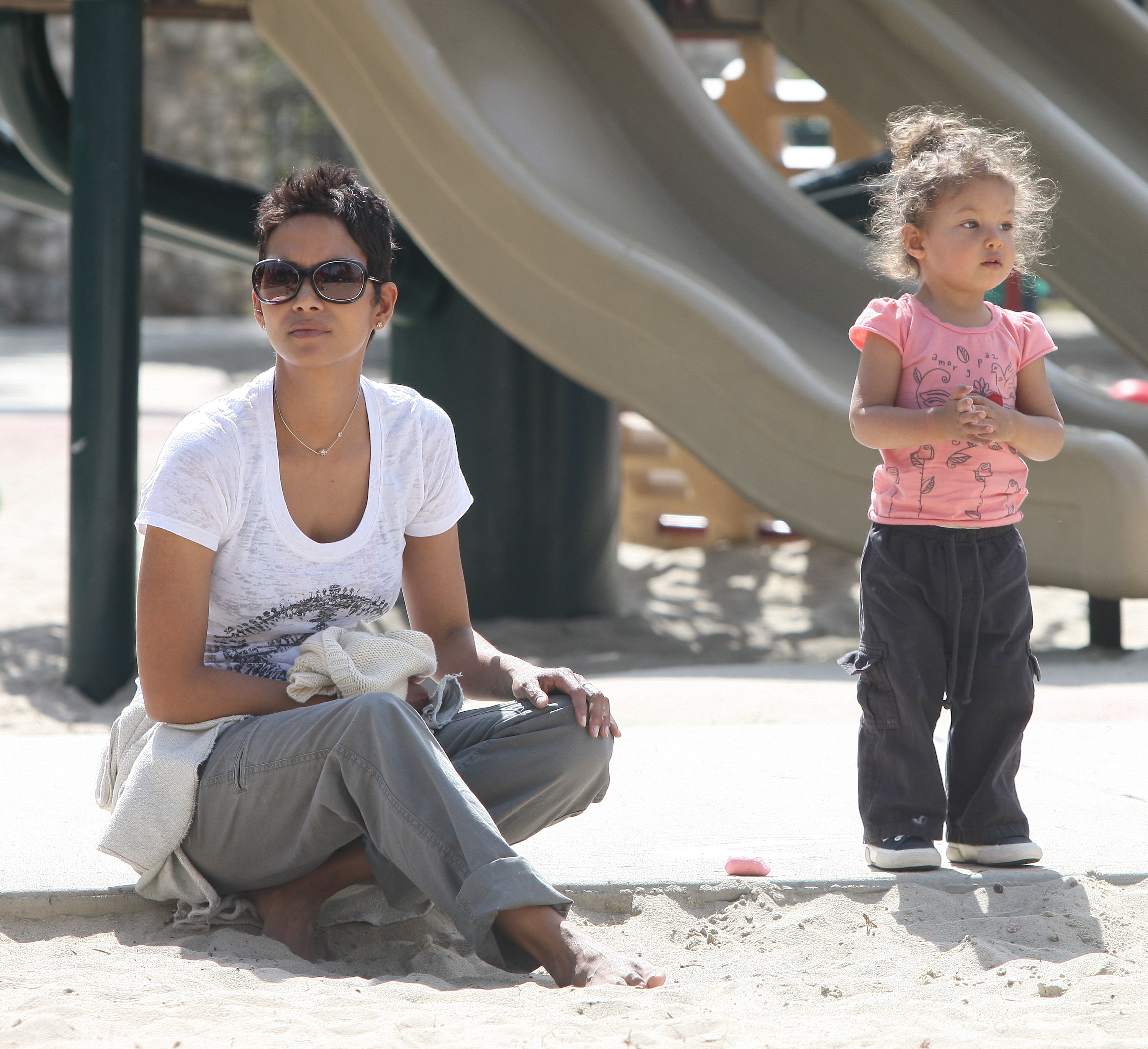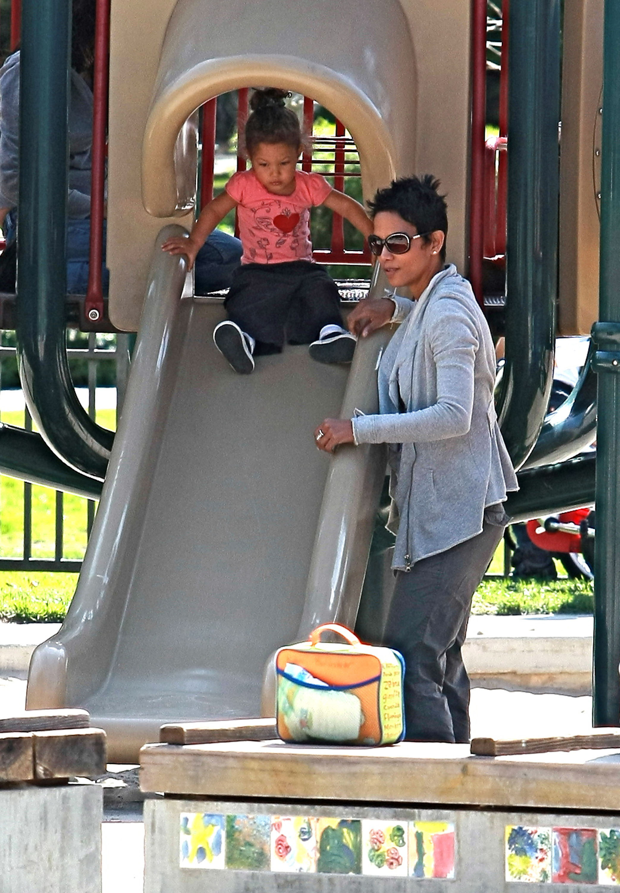 Halle Berry plays with her daughter Nahla at Coldwater Park in Beverly Hills - March 5, 2010