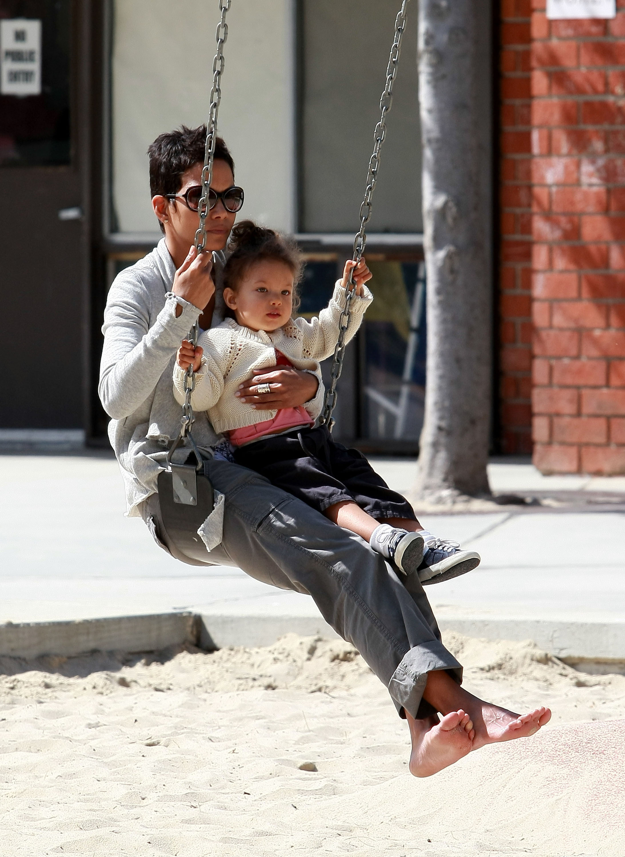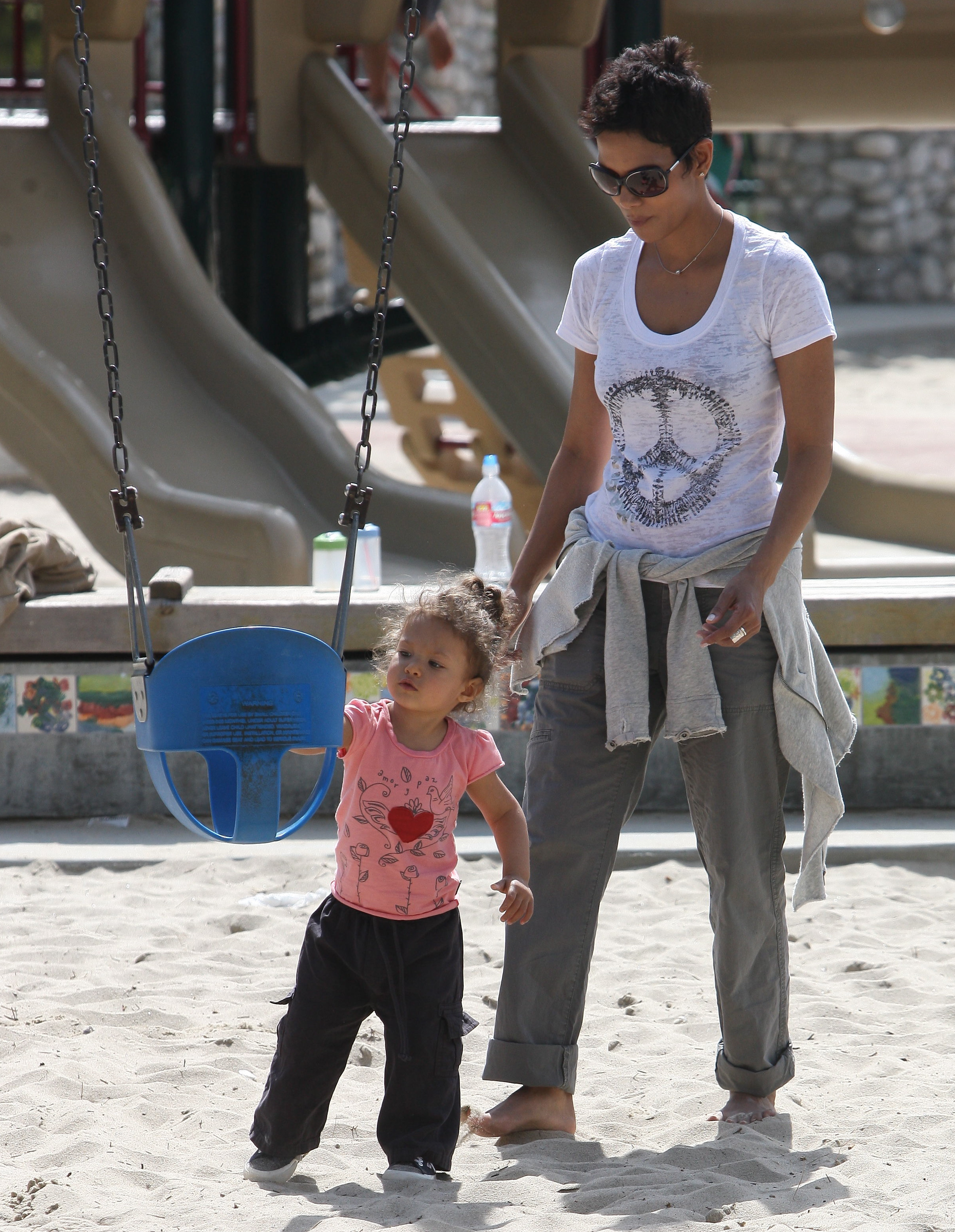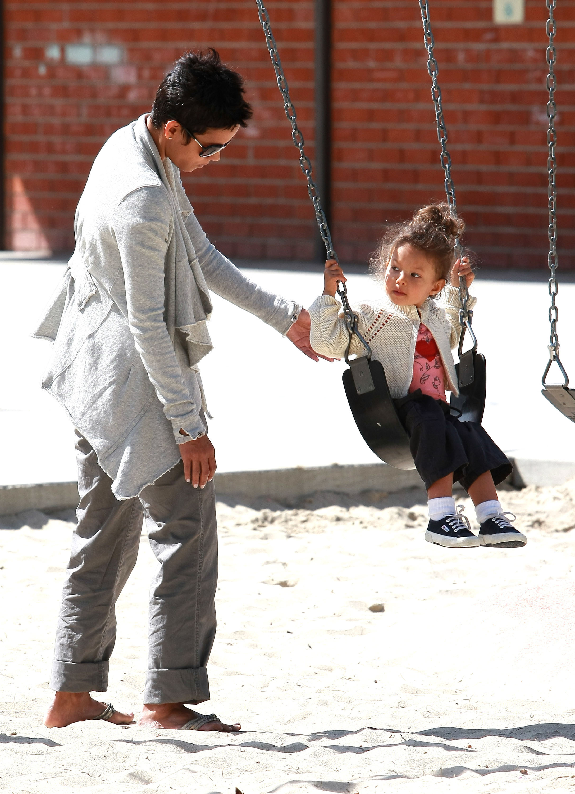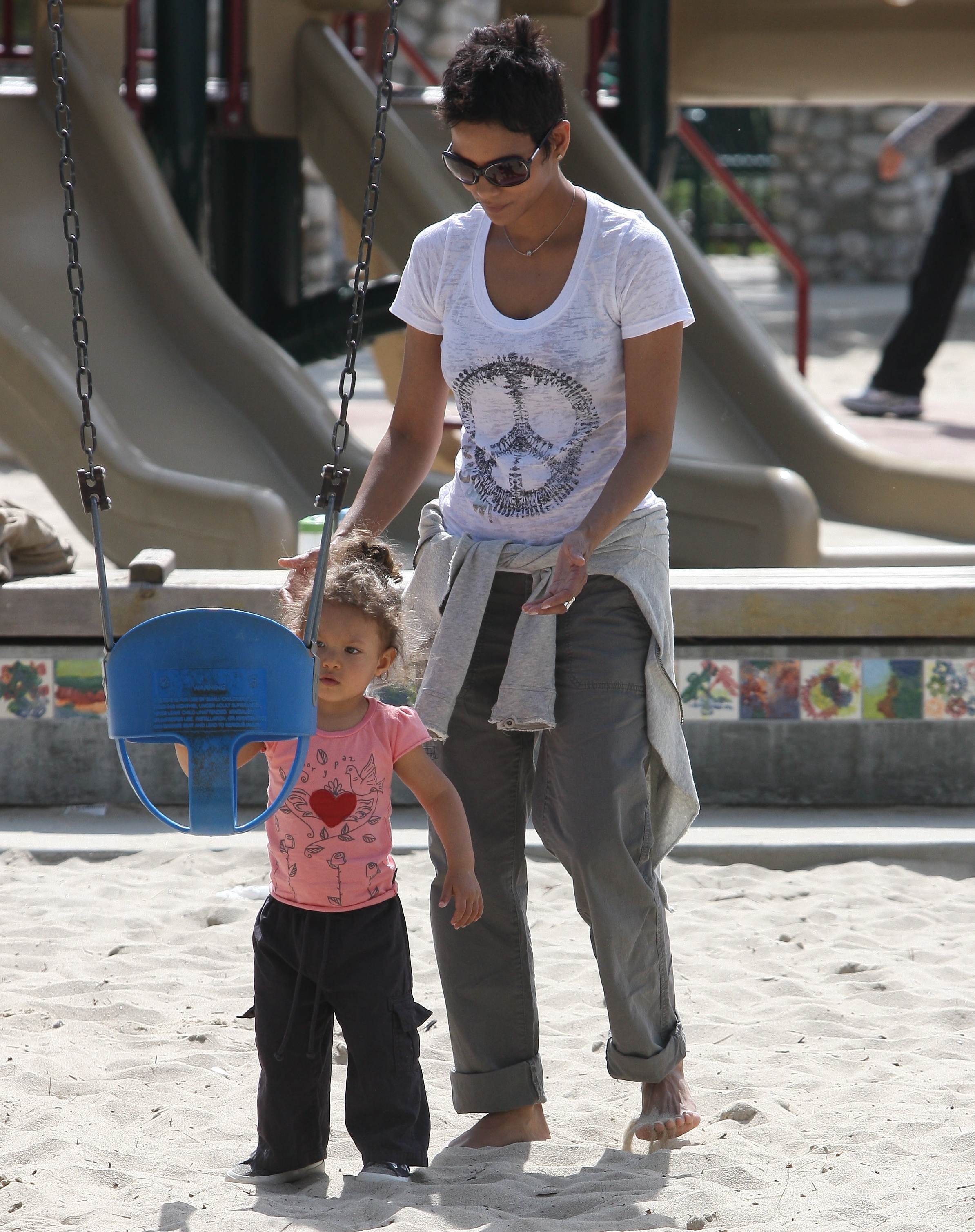 Halle Berry plays with her daughter Nahla at Coldwater Park in Beverly Hills - March 5, 2010