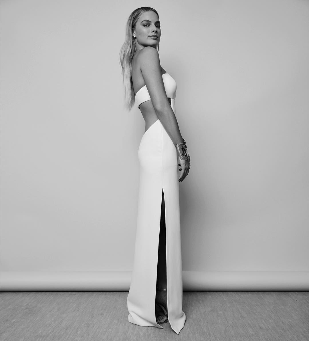 calvinklein Cutting edge: actor @margotrobbie shows off the razor sharp slit and cutouts in her custom Calvin Klein Collection silk #metgala dress. Photographed by @thomasgiddings. #mycalvins #manusxmachina