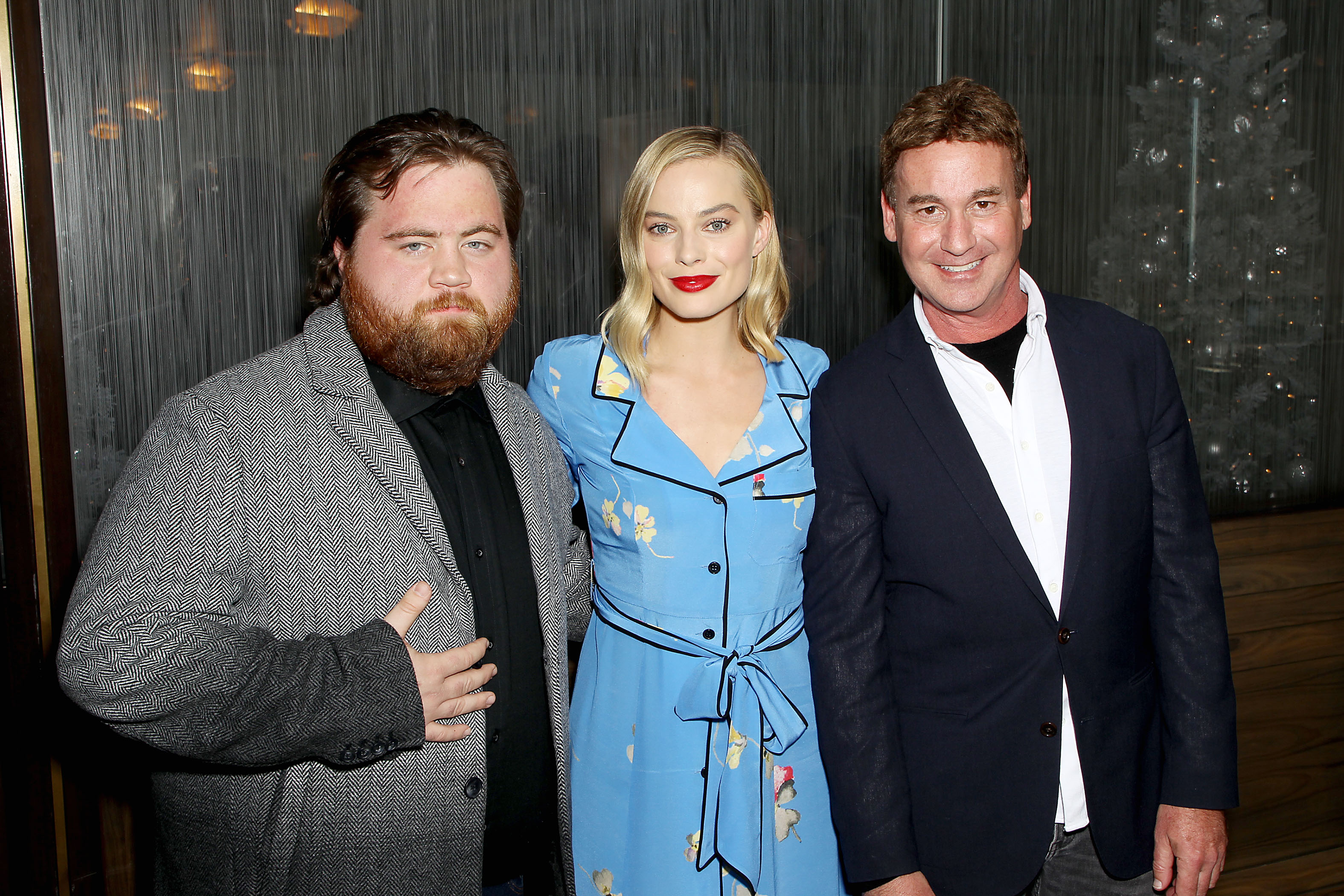 The ladies were joined at the event by their co-star Paul Walter Hauser, who was festive in his Christmas-themed Stranger Things sweater.
